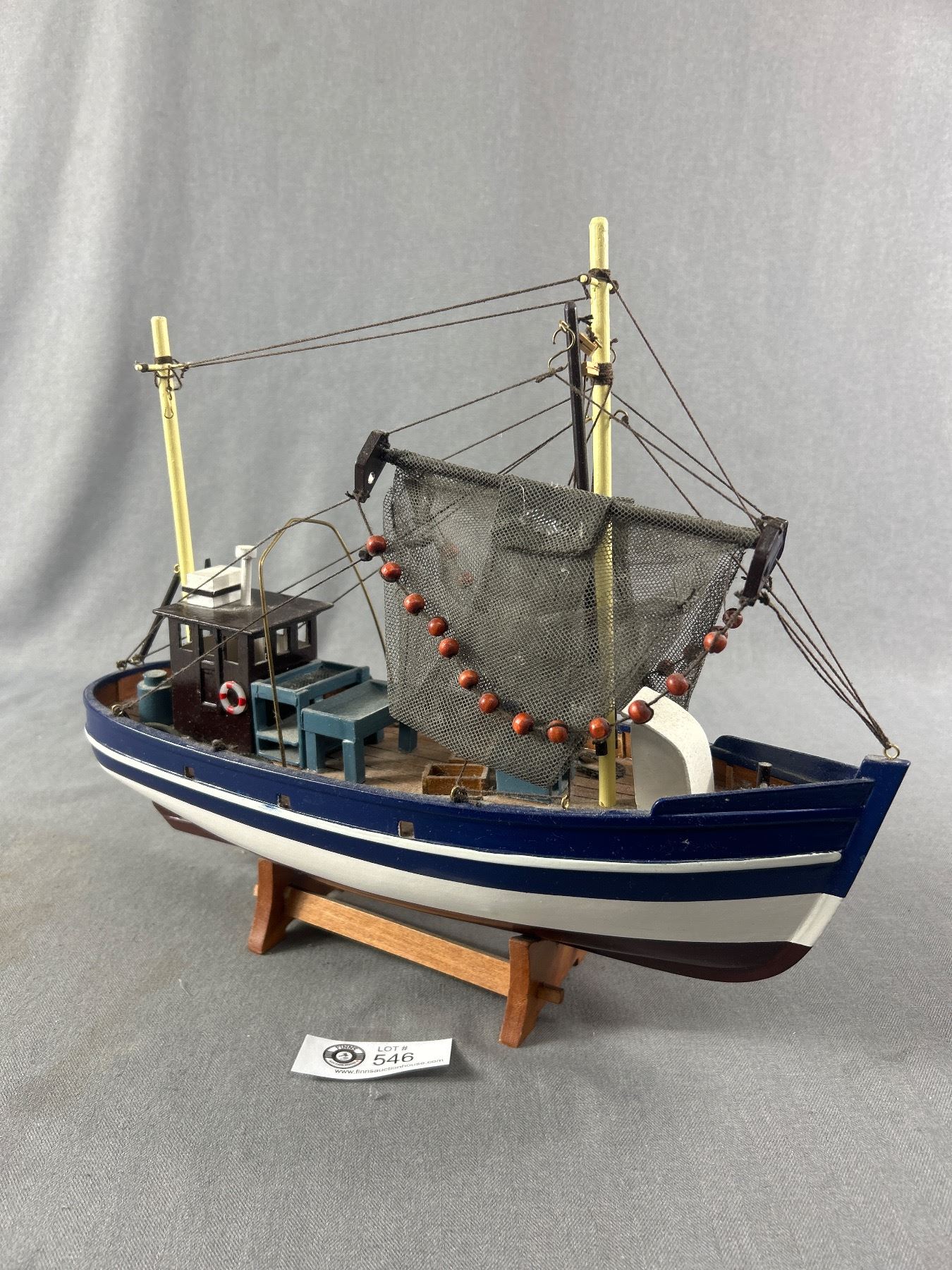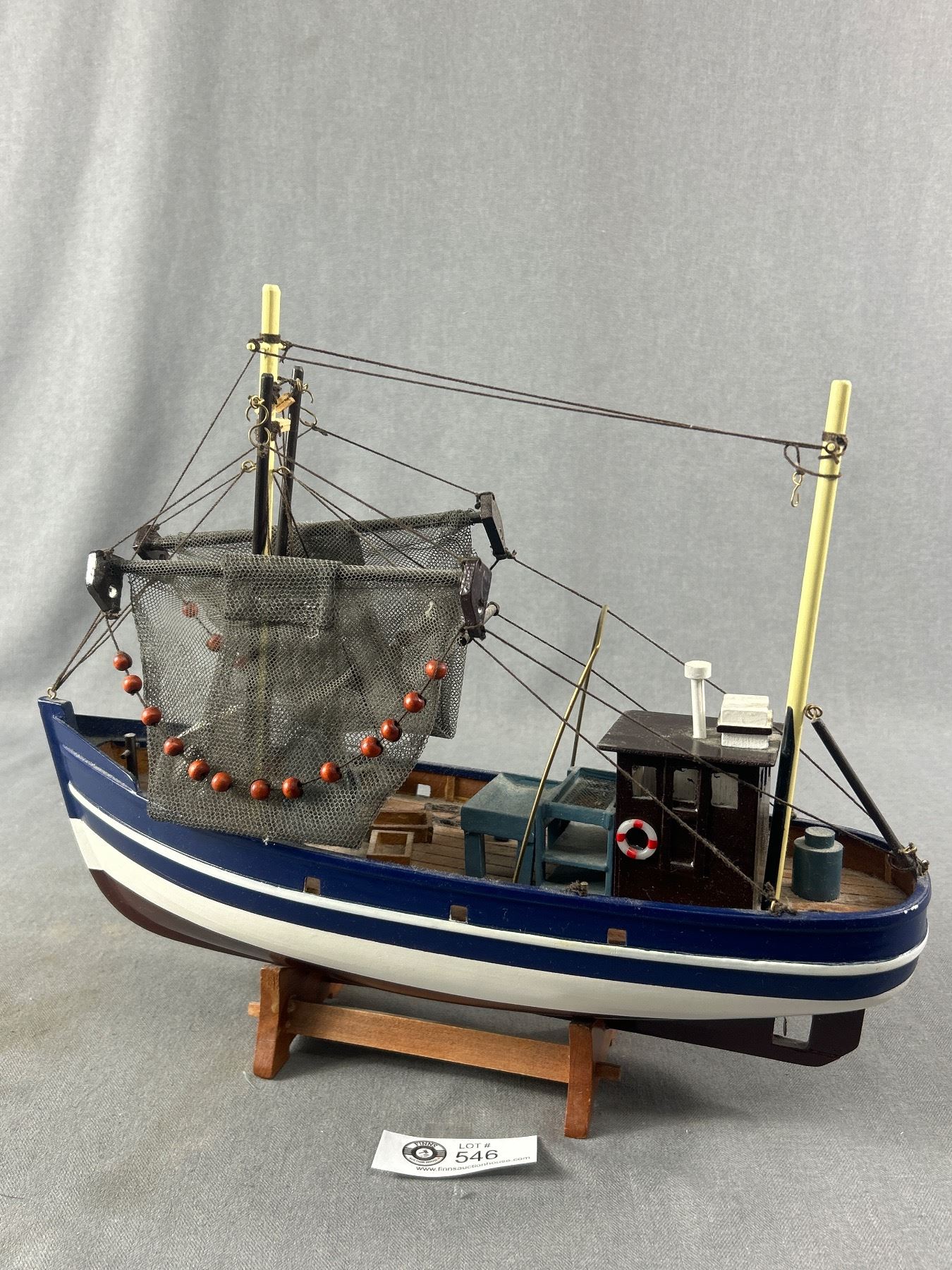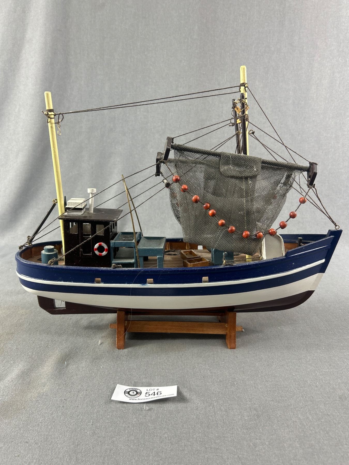 Interesting Detailed Wood Fishing Boat. Approx. 13.5" H x 16" L