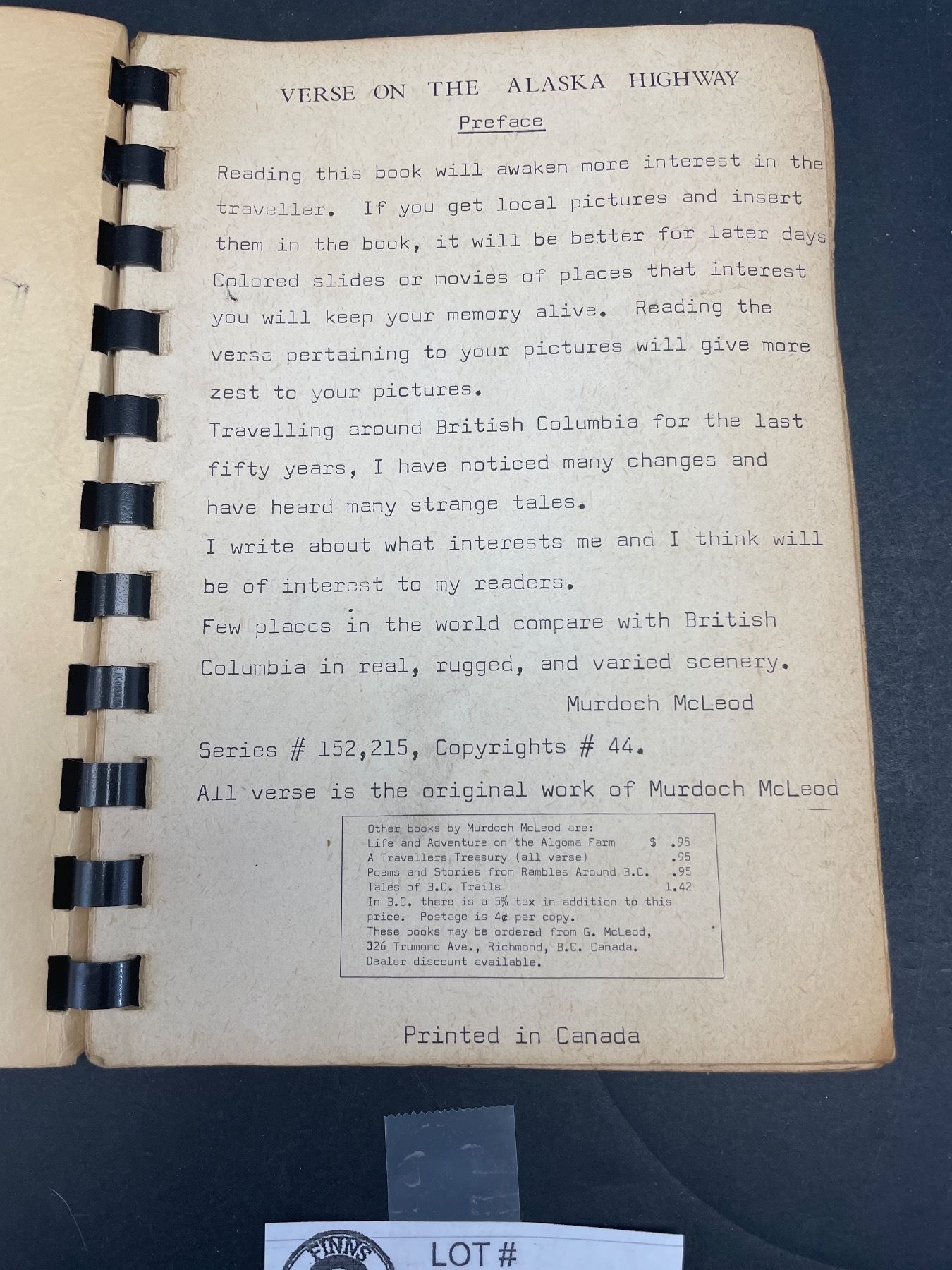 Interesting Small Book Verse On the Alaska Highway By Murdoch McLeod