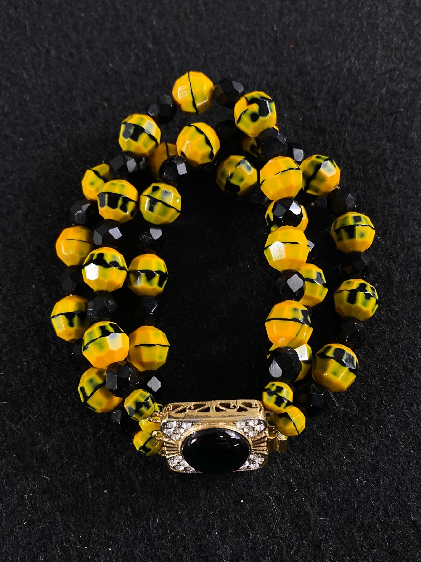Interesting Yellow Beads Bracelet with Art Deco Clasp