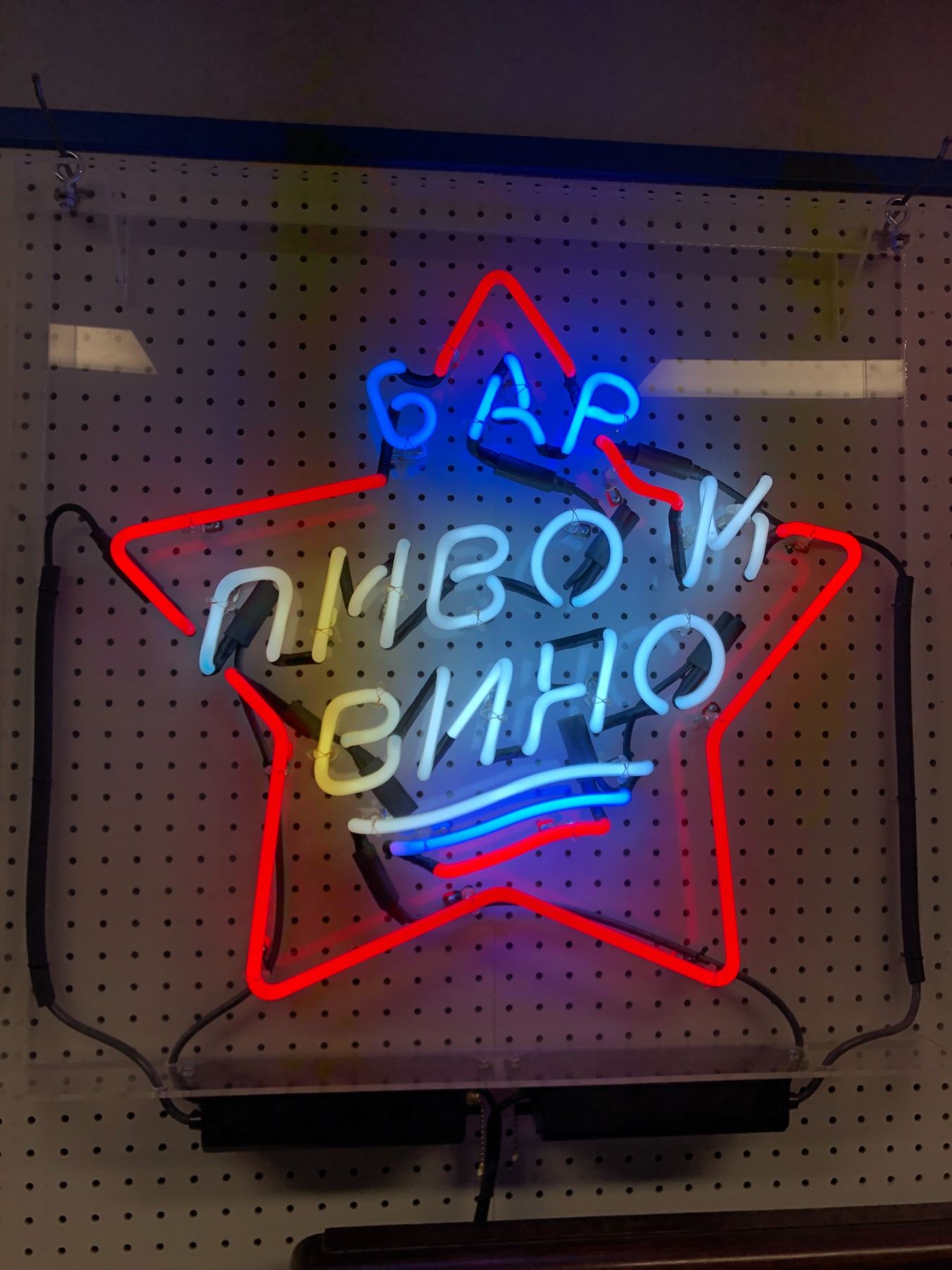Interior of tavern custom made neon sign from the Blockbuster partial animated movie - 29 1/2in x 27 1/2in