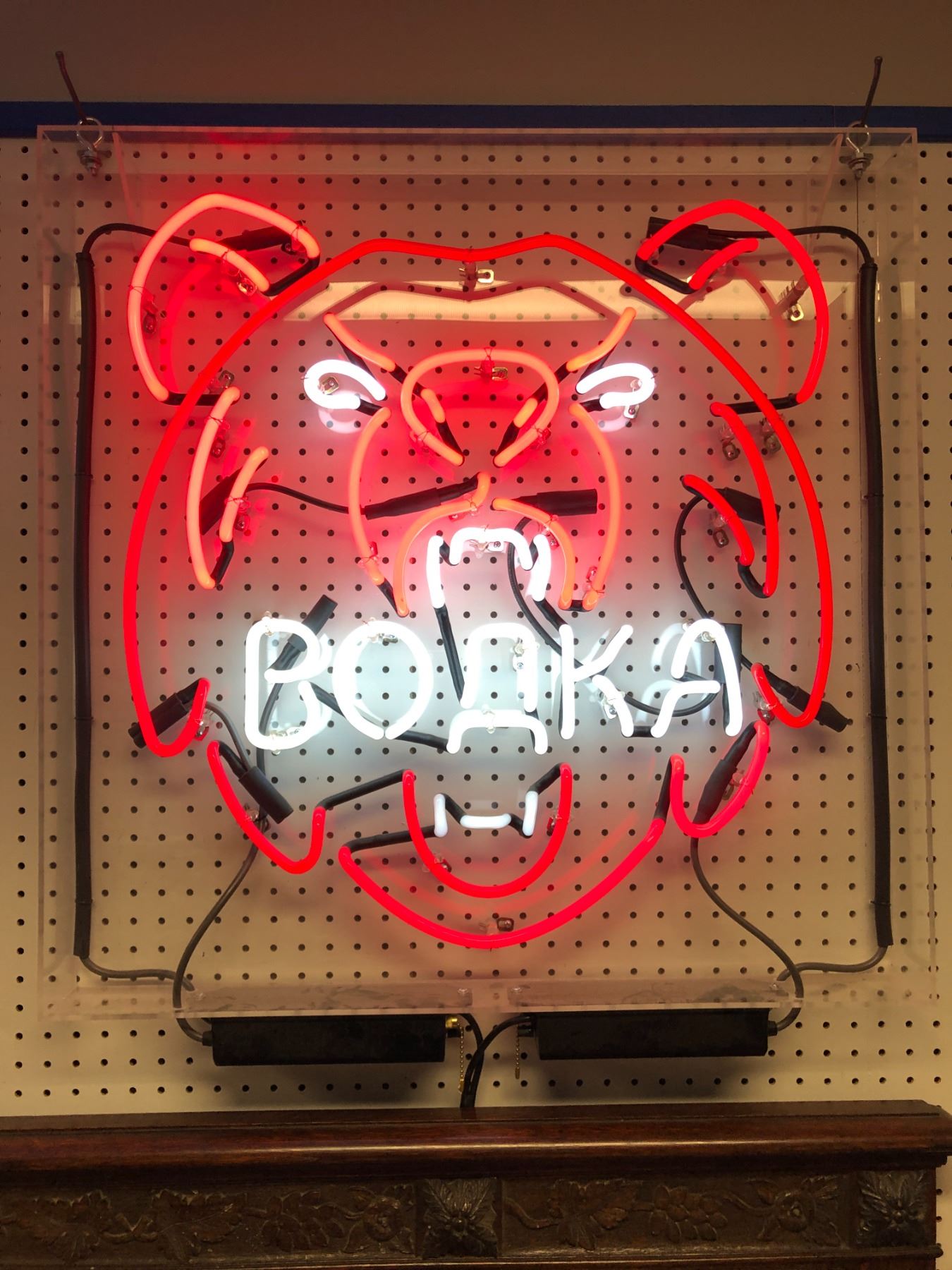 Interior of tavern custom made neon sign from the Blockbuster partial animated movie - approx. 29 1/2in x 29 1/2in
