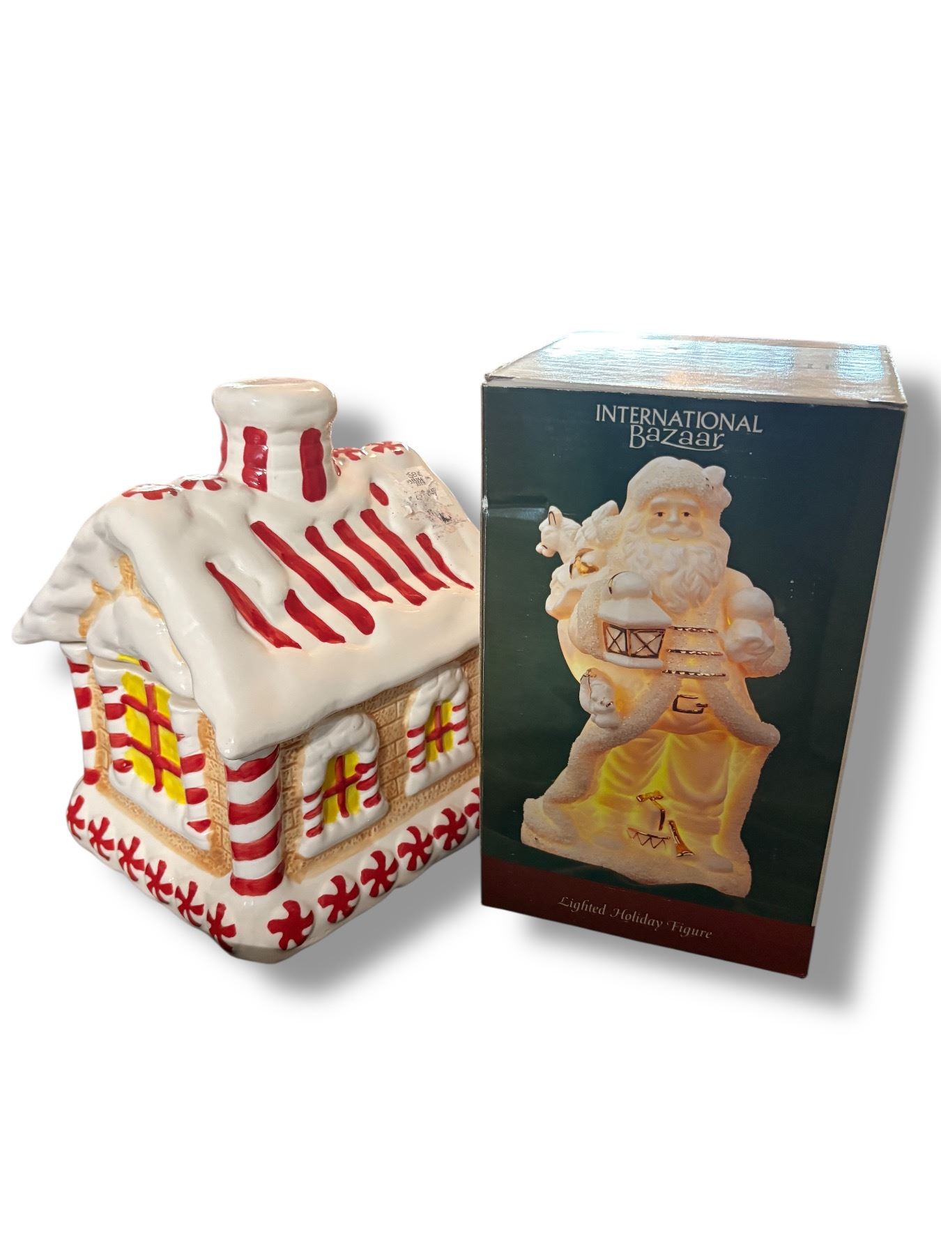 International Bazaar lighted holiday figure & porcelain cookie jar