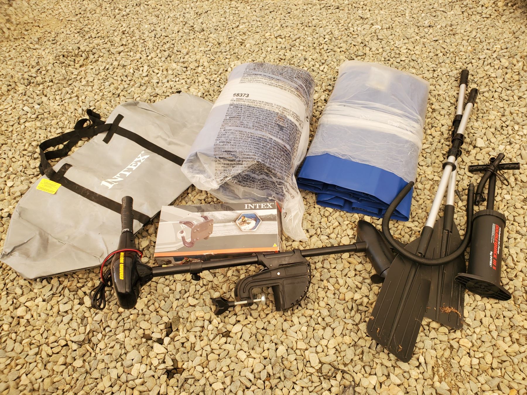 Intex Inflateable boat with Electric Motor Paddels (Looks New) Most Items have not been tested - 17% Buyer Fee. Payment Processed through Live Auction World ( Visa or Master Card ) pick up Saturday, or Tuesday