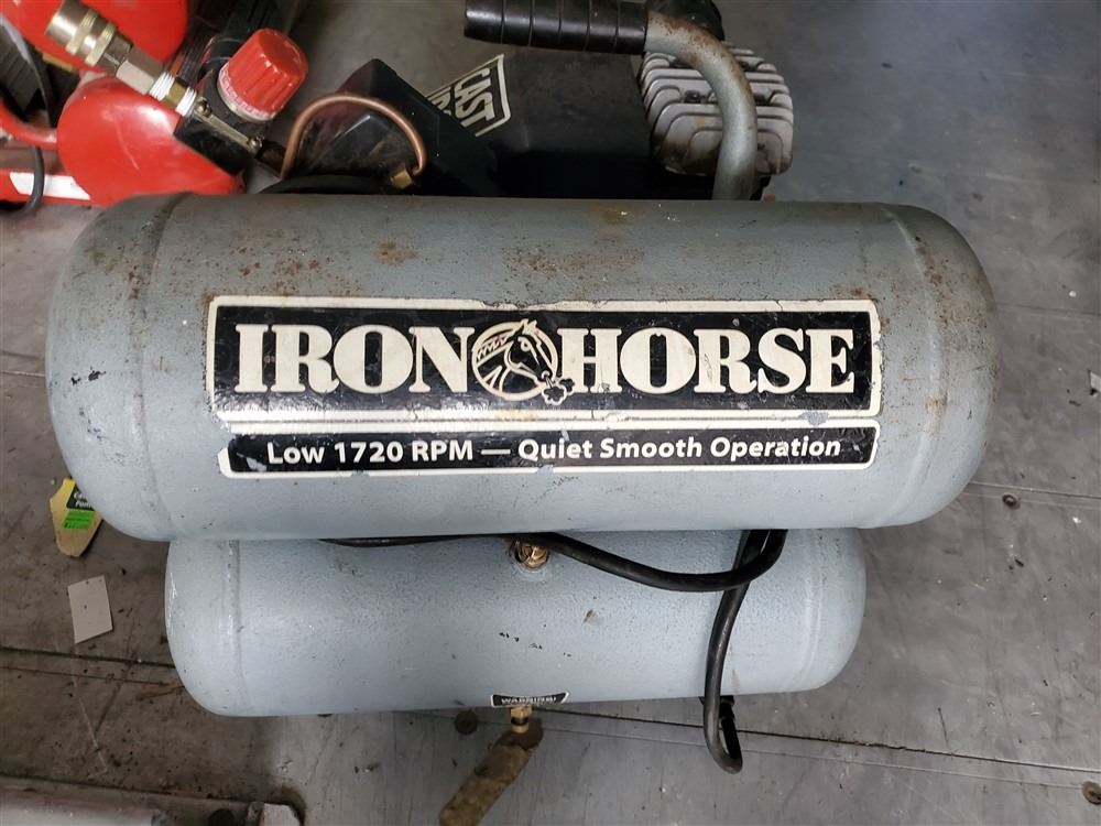 Iron Horse air compressor - Most Items have not been tested - Viewing Recommended- 17% Buyer Fee. Payment Processed through Live Auction World ( Visa or Master Card ) pick up Saturday, or Tuesday
