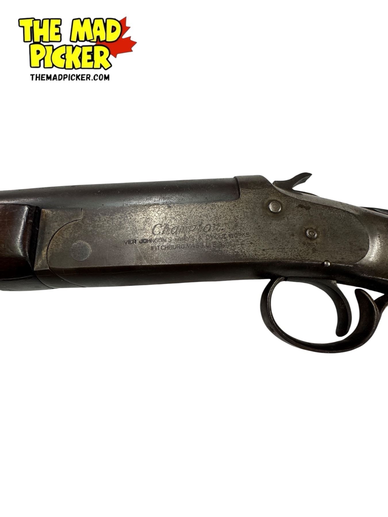 Iver Johnson Champion 12-Gauge Break Action Shotgun A classic piece of American firearms history, this single-shot 12-gauge shotgun was produced by Iver Johnson Arms & Cycle Works in Fitchburg, Massachusetts. Known for its rugged simplicity and reliability, the Champion features a break-action design, a 30-inch barrel, and a full choke. The barrel and lug are forged as one, a hallmark of Iver Johnson craftsmanship. The receiver is case-hardened, and the walnut stock adds timeless appeal.