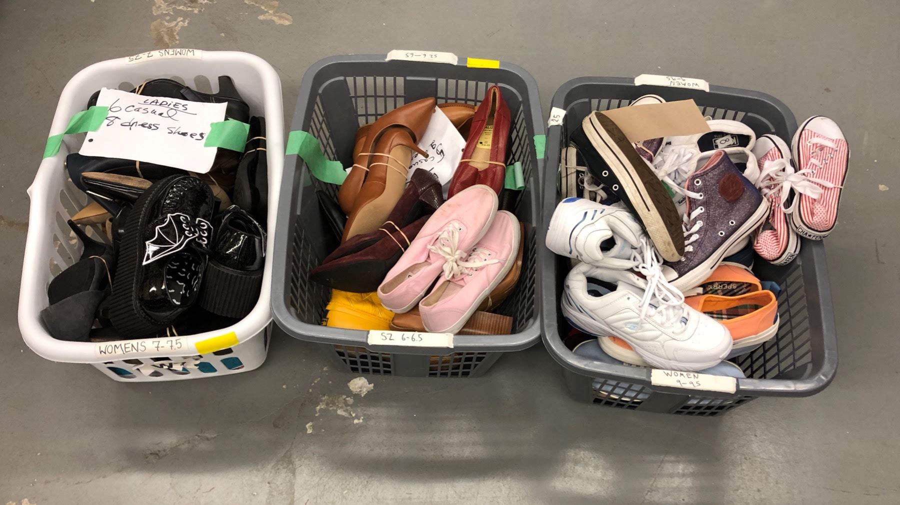 "Ivy + Bean Movie" 3 baskets full of women's assorted heels/ Converse sneakers etc.
