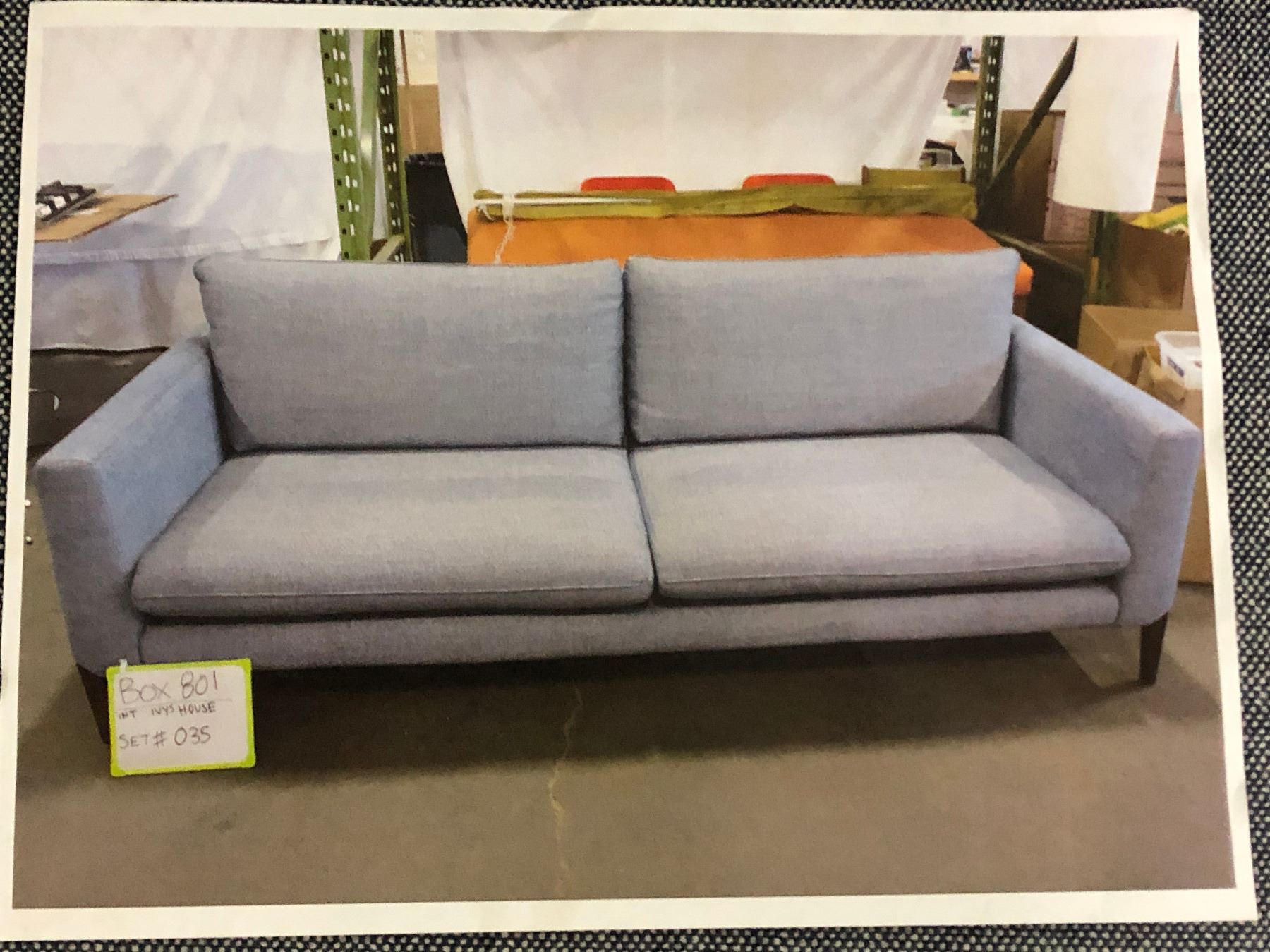"Ivy + Bean Movie" IVY's- house contemporary grey / blue 2 seat sofa ( Excellent shape, approx. 85 inches wide by 37 inches width by 30 inches high