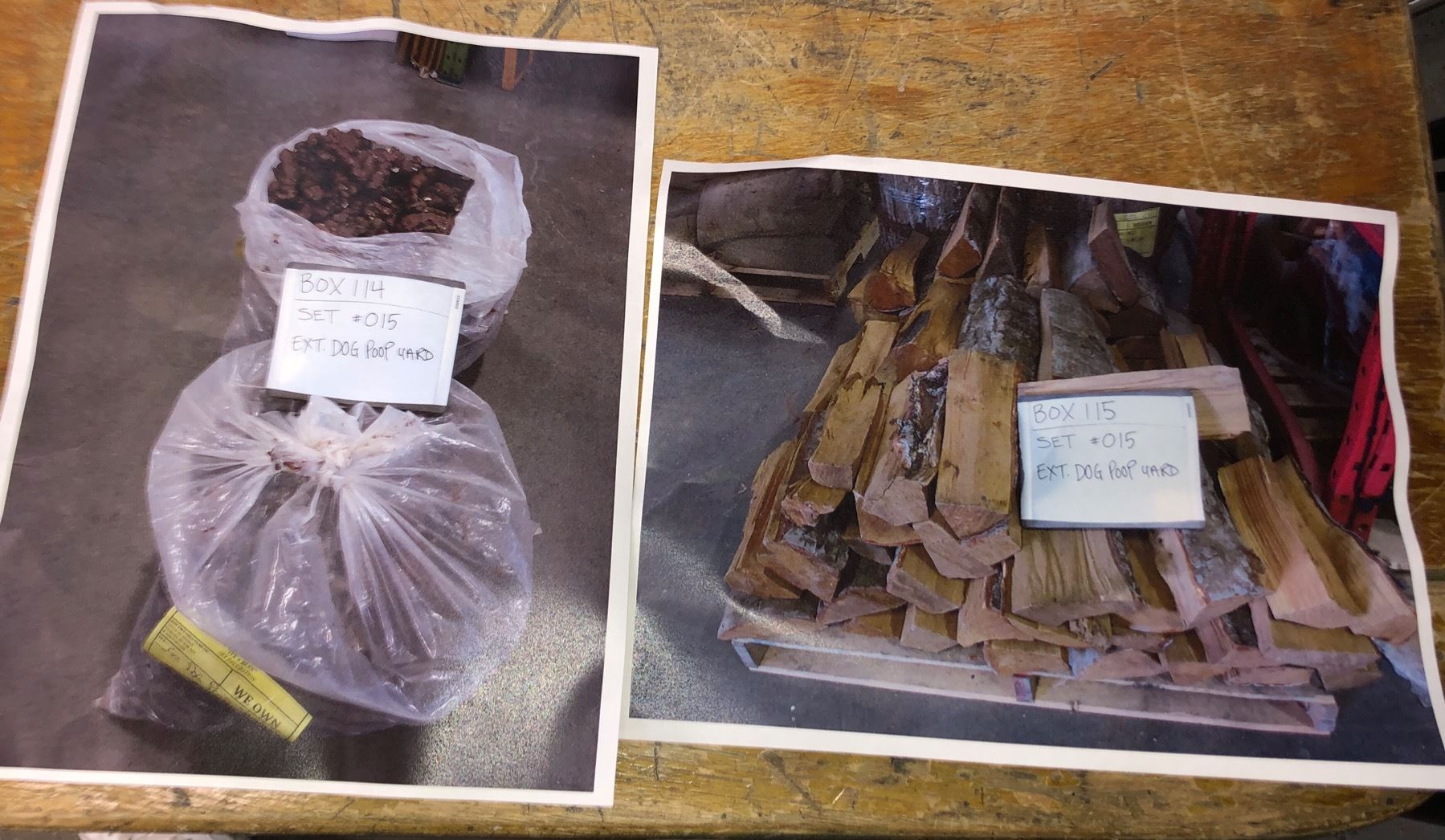 "Ivy + Bean Movie" Pallet With pile of firewood and bags of fake dog poop