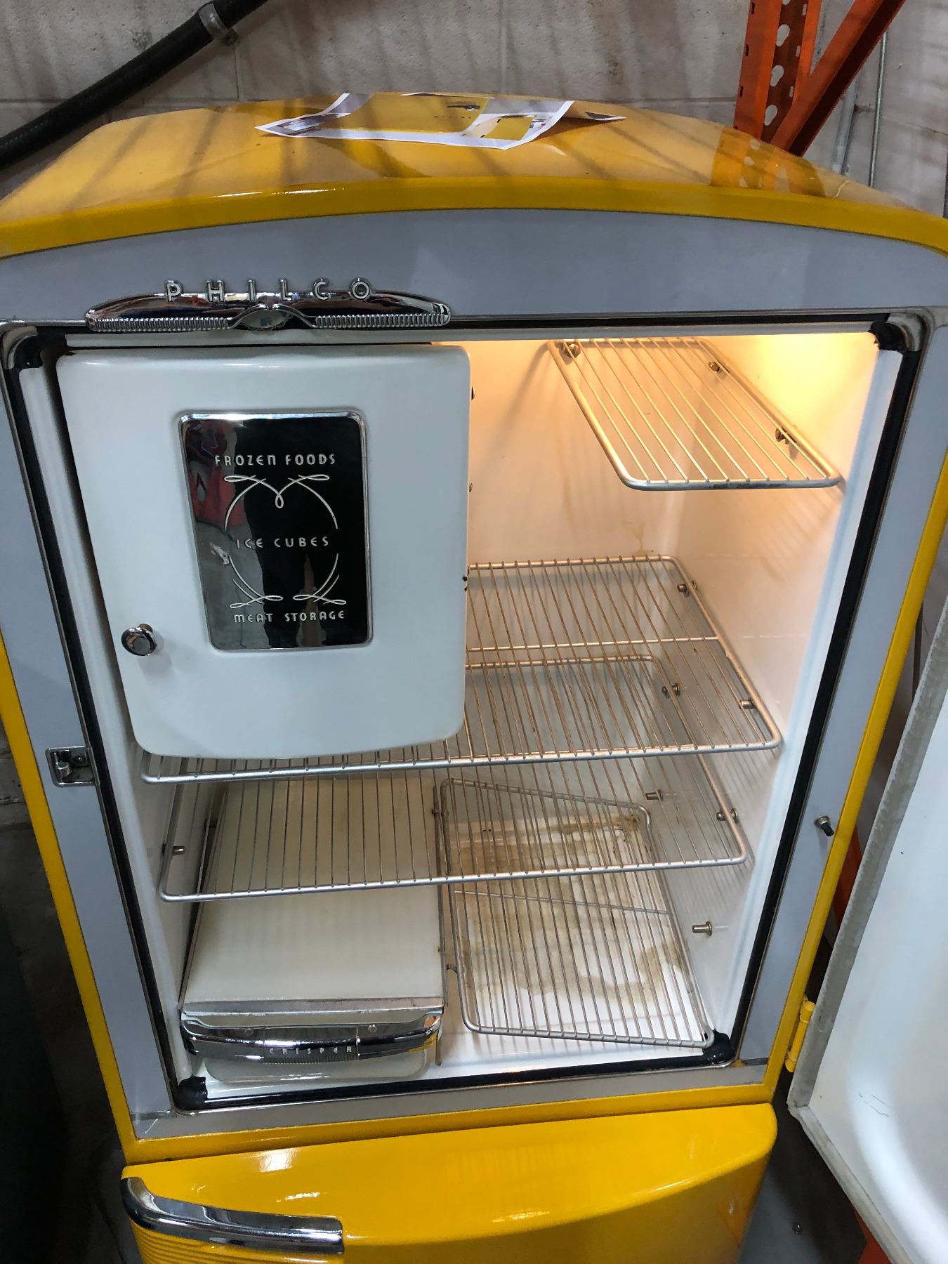 "Ivy + Bean Movie" Vintage Philco yellow refrigerator Beans House (Approximately 29 1/2in wide x 20 1/2in dept x 58in high)