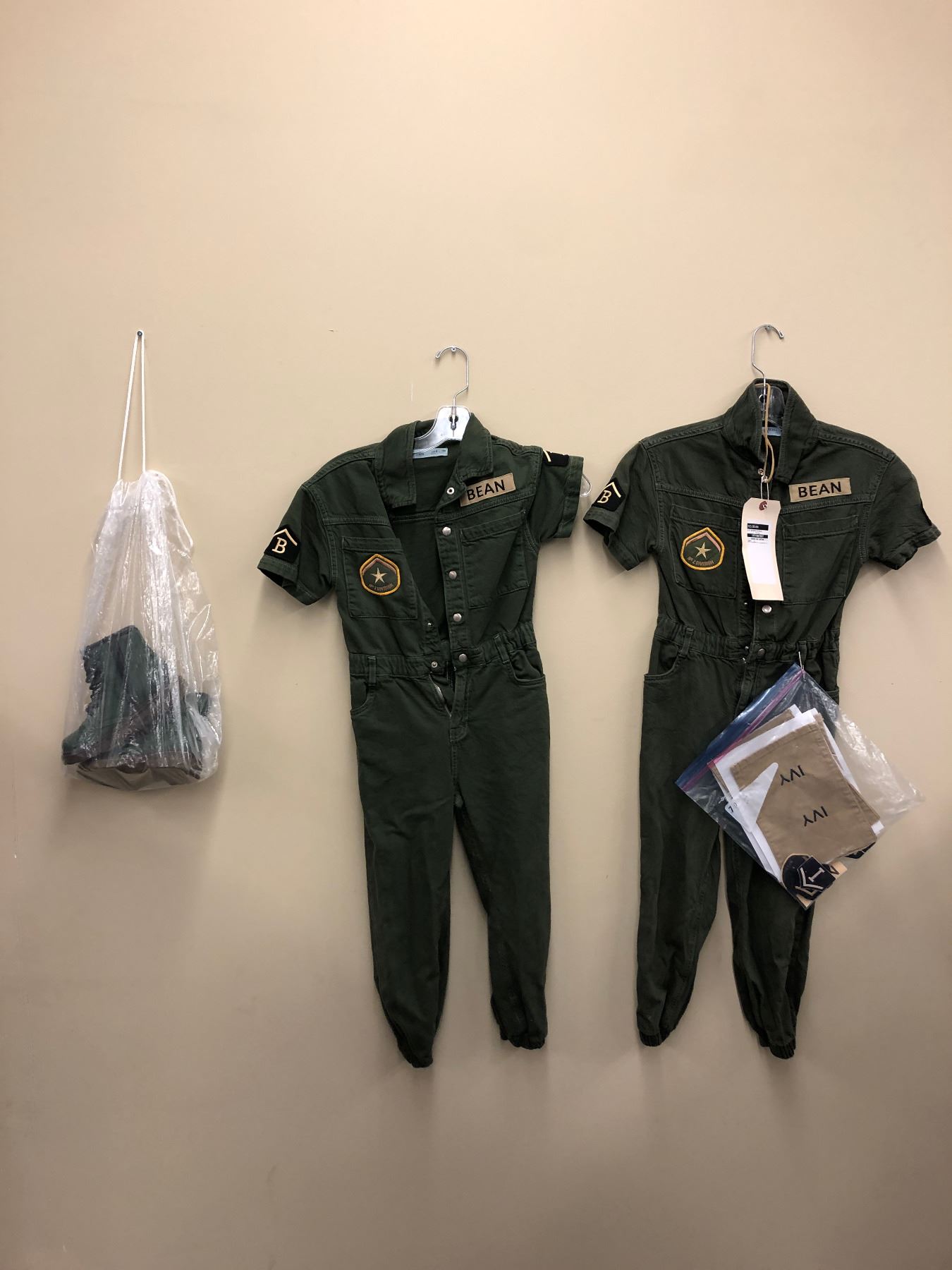 "Ivy + Bean Movie" group of 2 hero bean military jumpsuits with accessories and one pair of boots