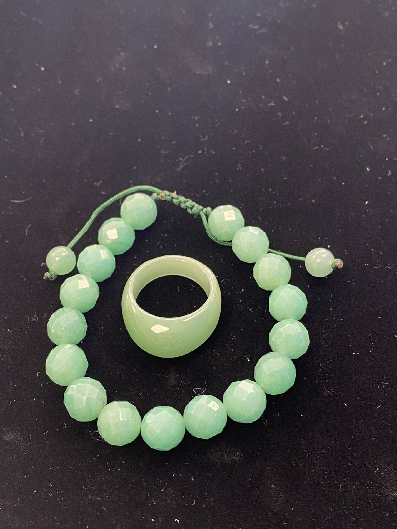 JADE BEAD BRACELET AND JADE RING SIZE 10