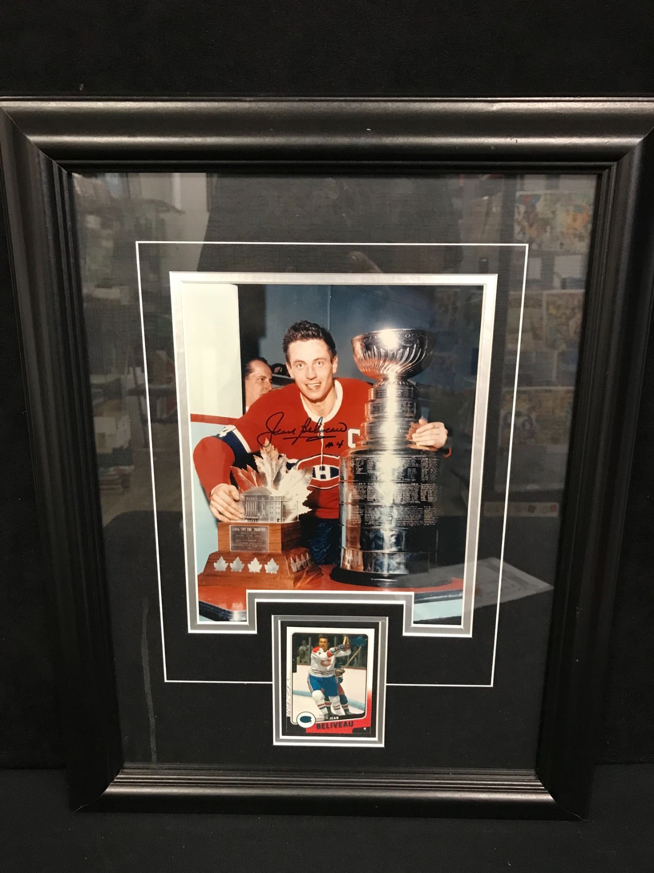 JEAN BELIVEAU SIGNED AND CUSTOM FRAMED STANLEY CUP 16 X 20 (PASTIME COA)