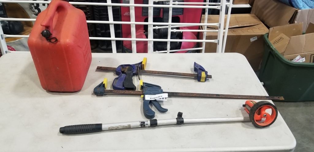 JERRY CAN, CLAMPS, AND LENGTH MEASURING TOOL