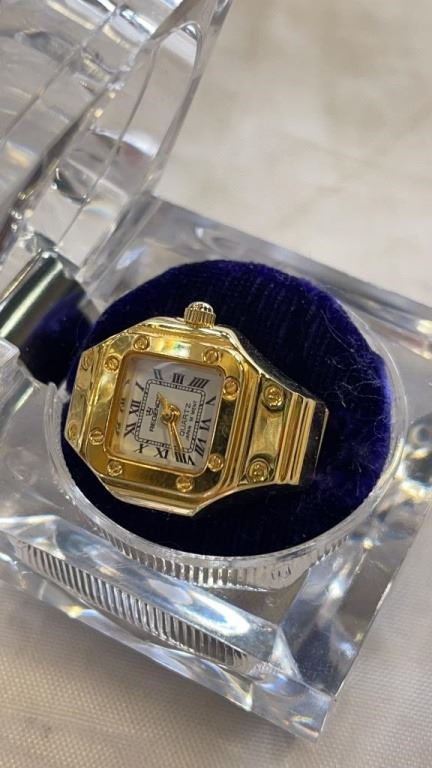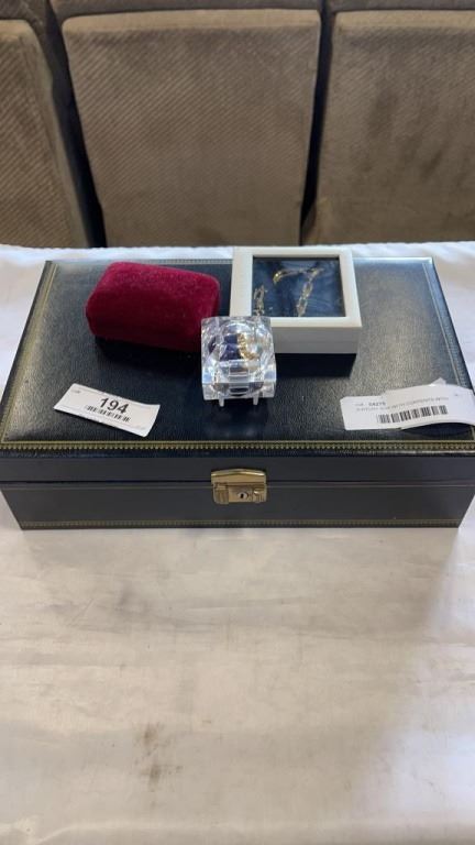 JEWELRY BOX WITH CONTENTS WITH FINGER WATCH BRACELET AND MORE