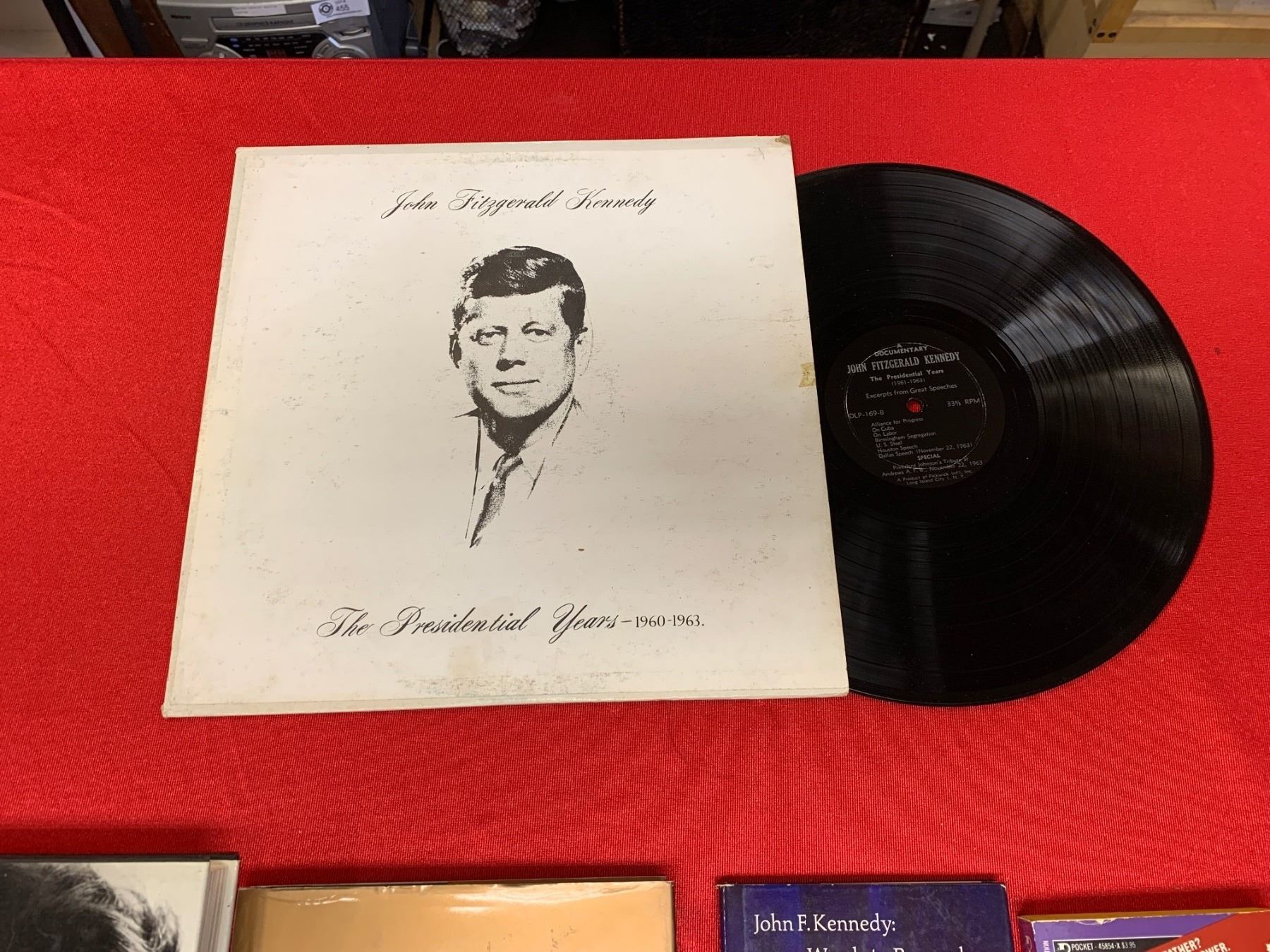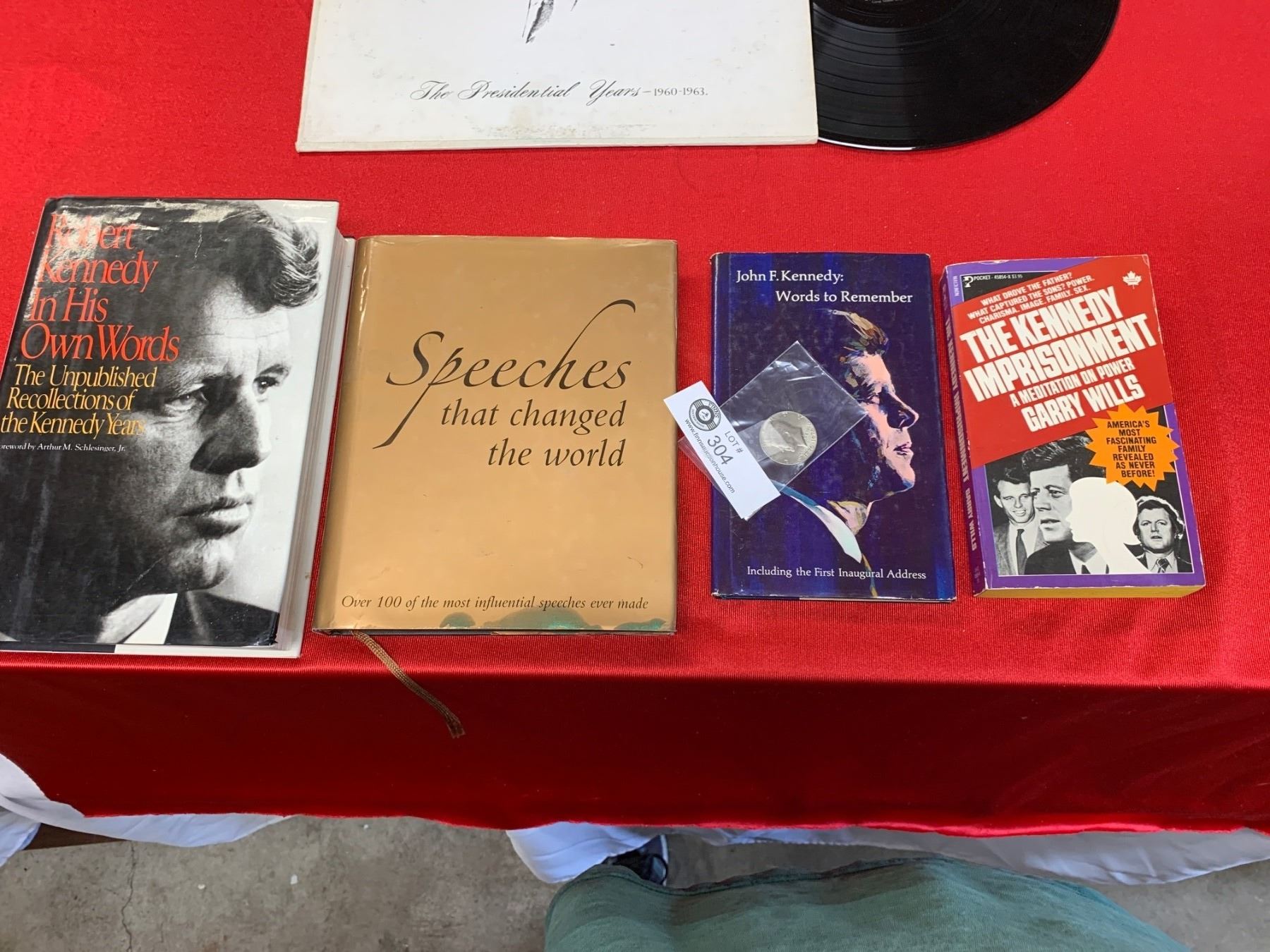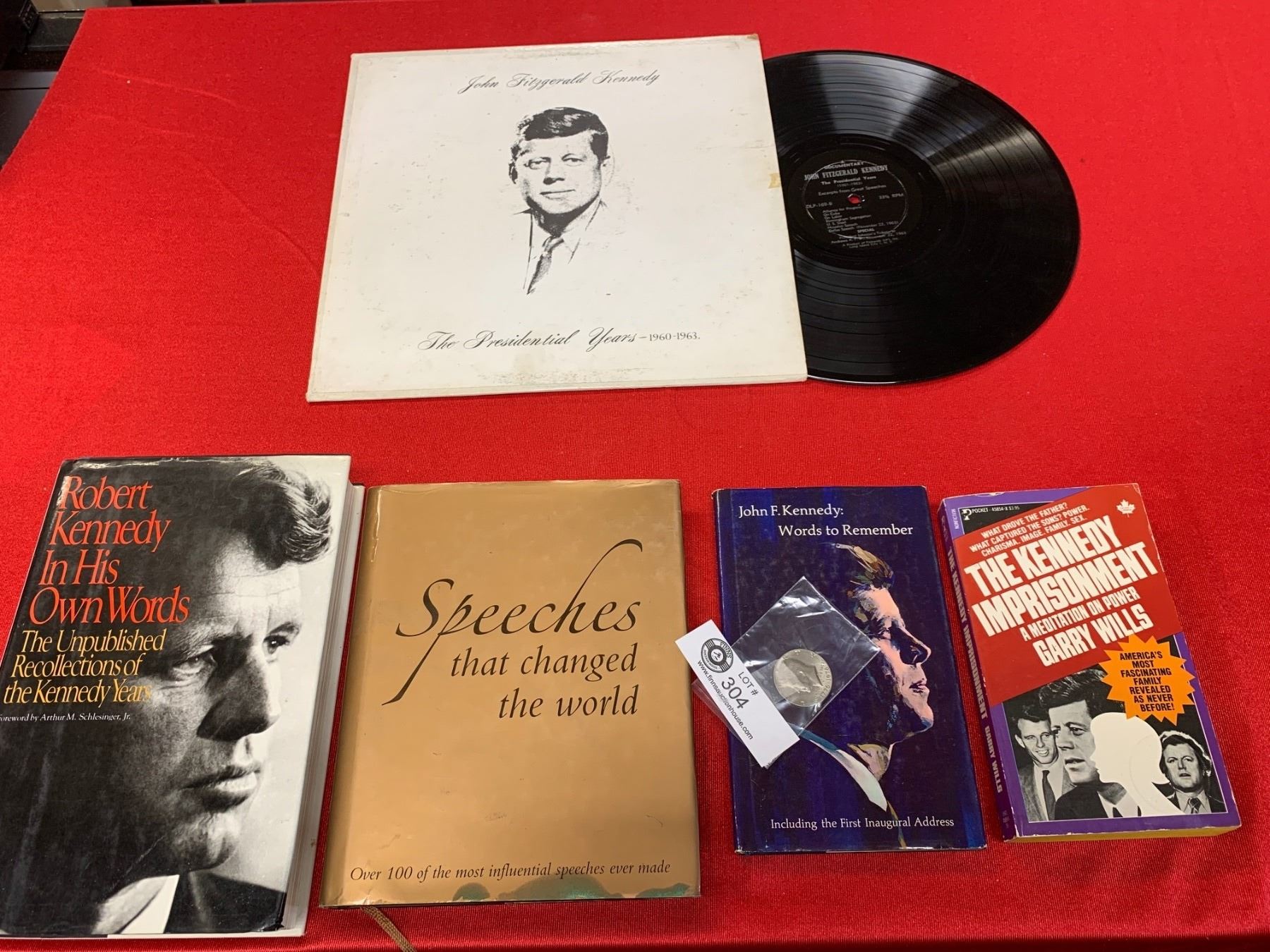 JFK Lot. Books, a record and a US Half Dollar Coin
