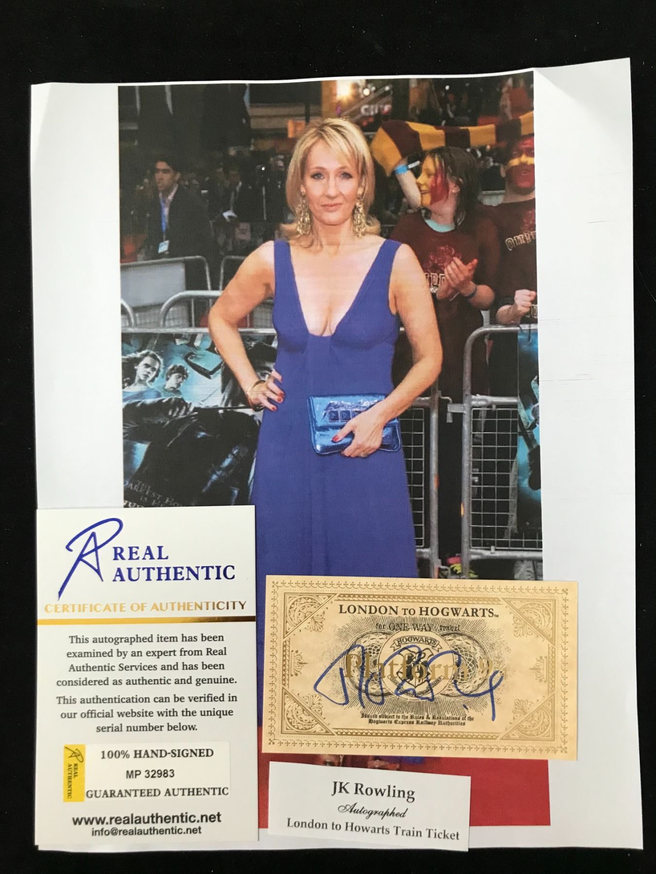 JK ROWLING SIGNED 8X10 AND TRAIN TICKET RA COA