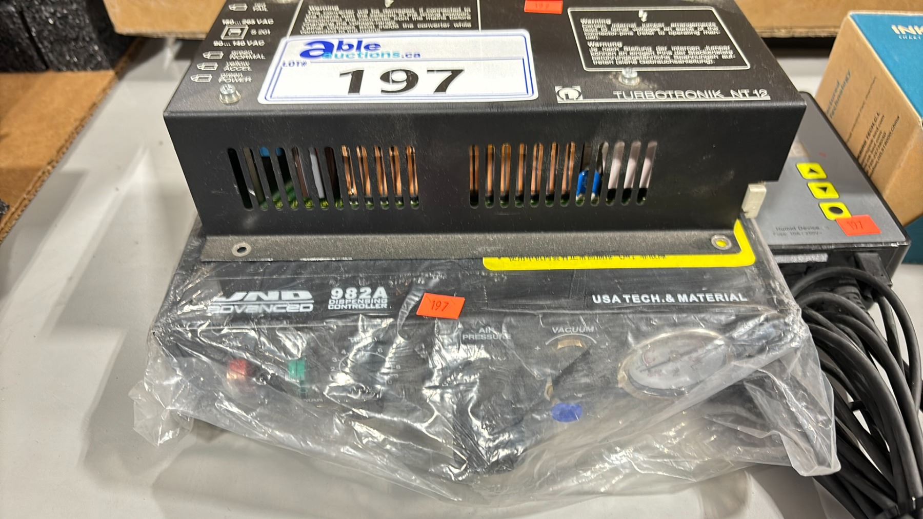 JND ADVANCED 982A DISPENSING CONTROLLER, TURBOTRONIK NT 12 TURBO PUMP CONTROLLER & 2 HUMIDITY CONTROLLERS