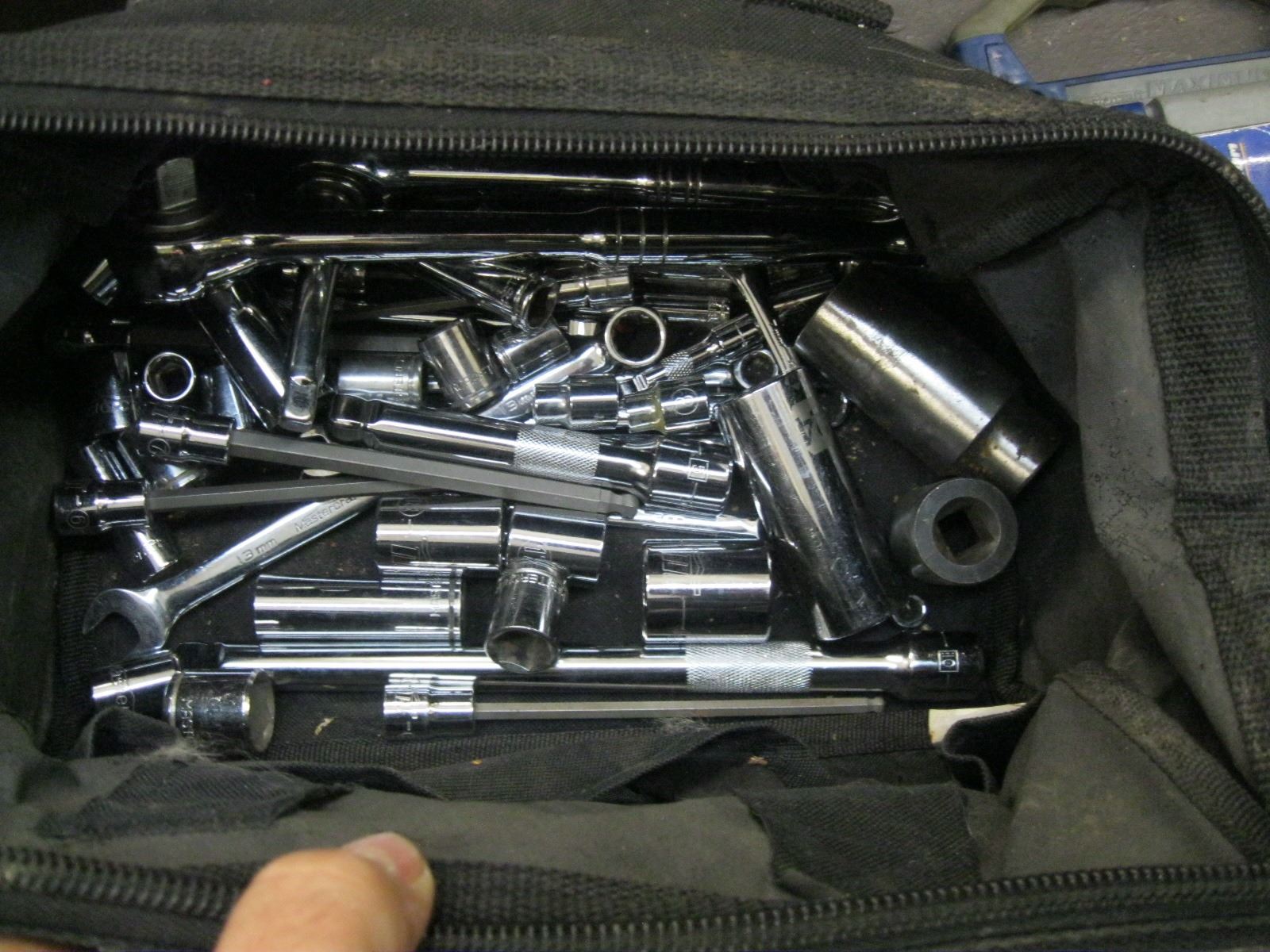 JOBMATE TOOLBAG W/SET OF MAXIM COMBINATION WRENCHES, SOCKETS, ETC.