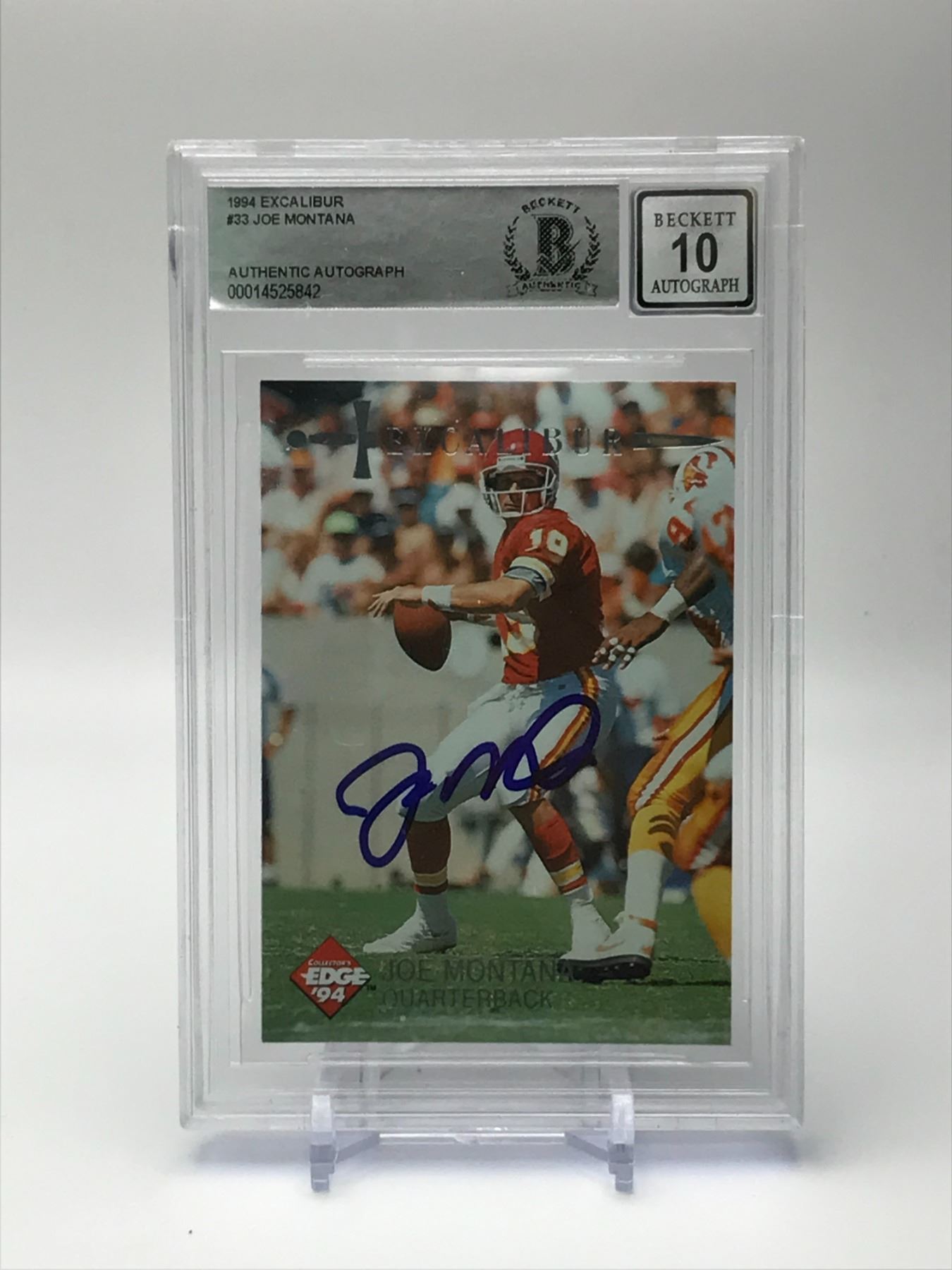 JOE MONTANA SIGNED 1994 EXCALIBUR TRADING CARD (BECKETT 10)