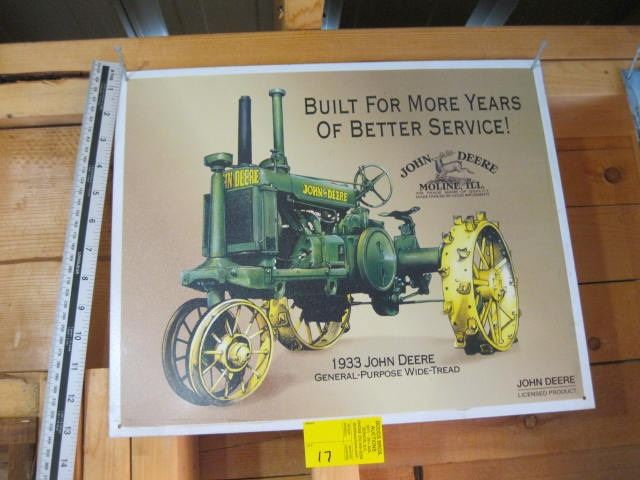 JOHN DEERE METAL 1933 GENERAL PURPOSE WIDE TREAD SIGN