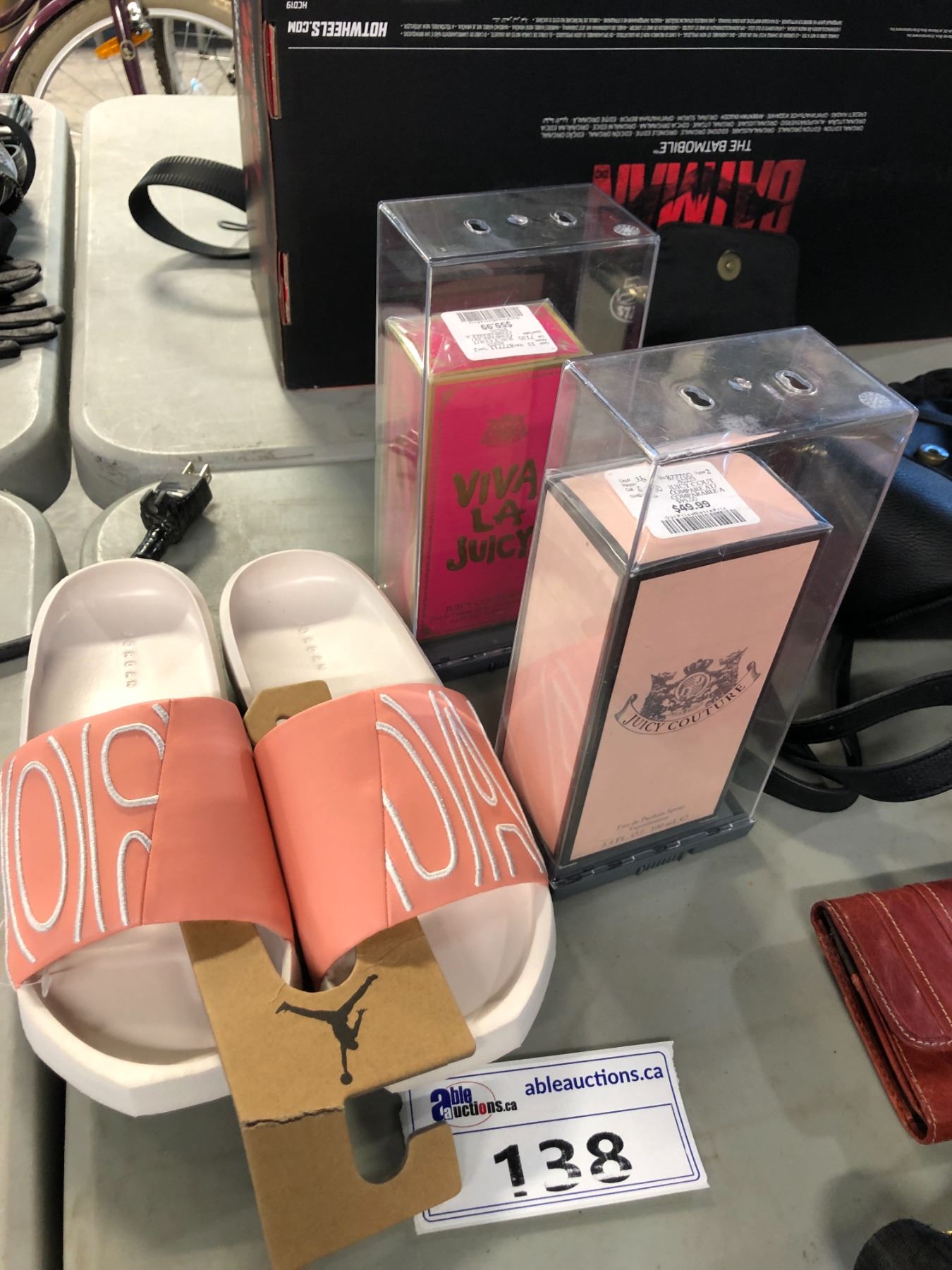 JUICE COUTURE AND VIAA LA JUICY PERFUME SPRAY 3.4 OZ AND A PAIR OF SIZE 8 S LADIES MICHAEL JORDAN SANDAL