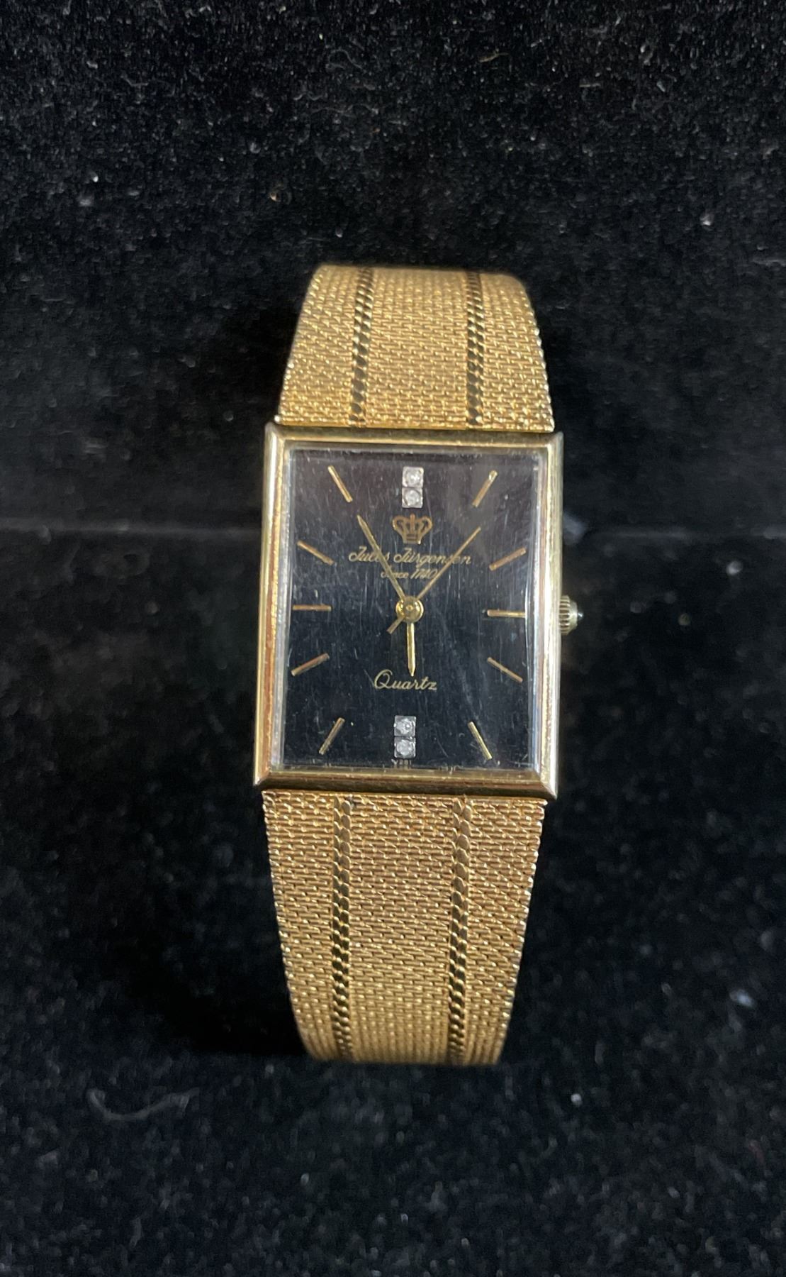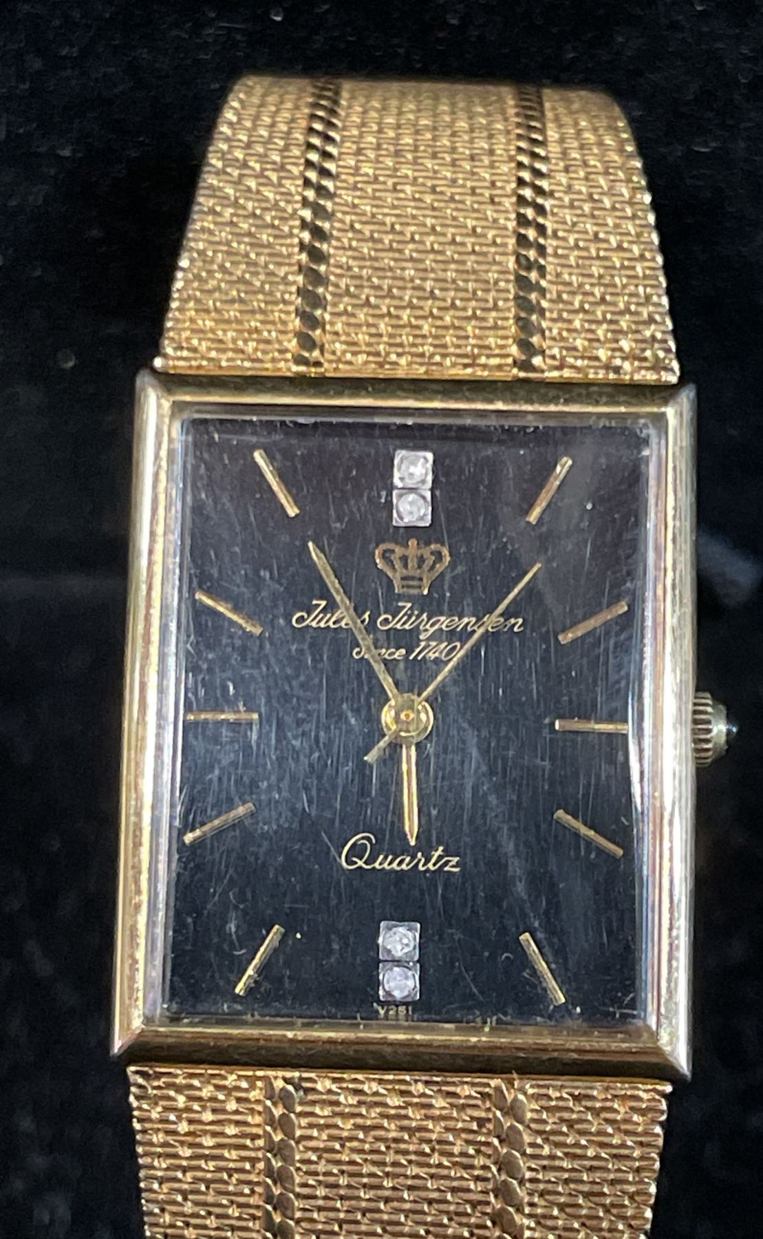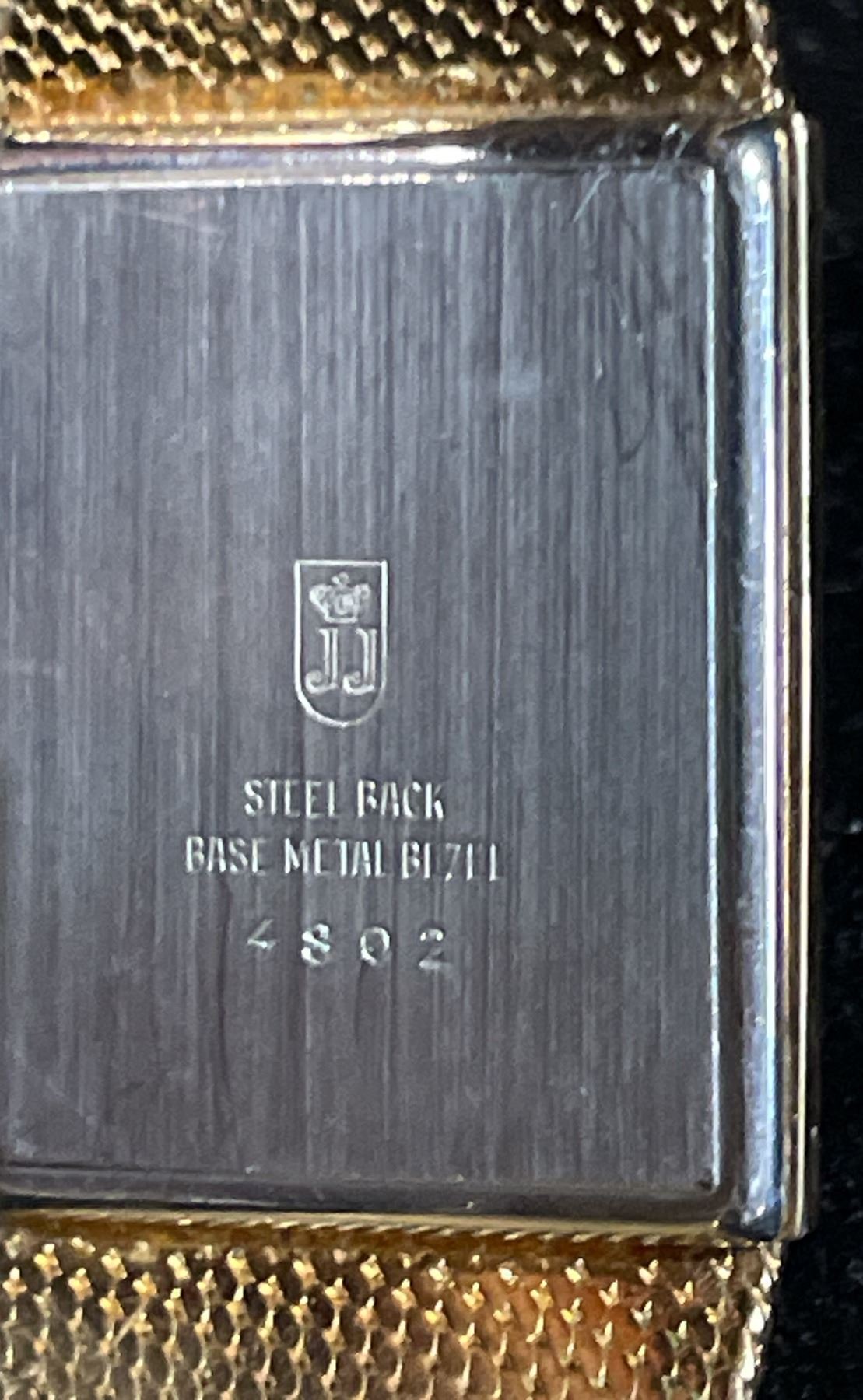 JULES JURGENSEN QUARTZ DIAMOND LADIES WRIST WATCH, STEEL BACK, BASE METAL BEZEL 4802 VINTAGE RADAR BLACK FACE (DOES NOT TICK)