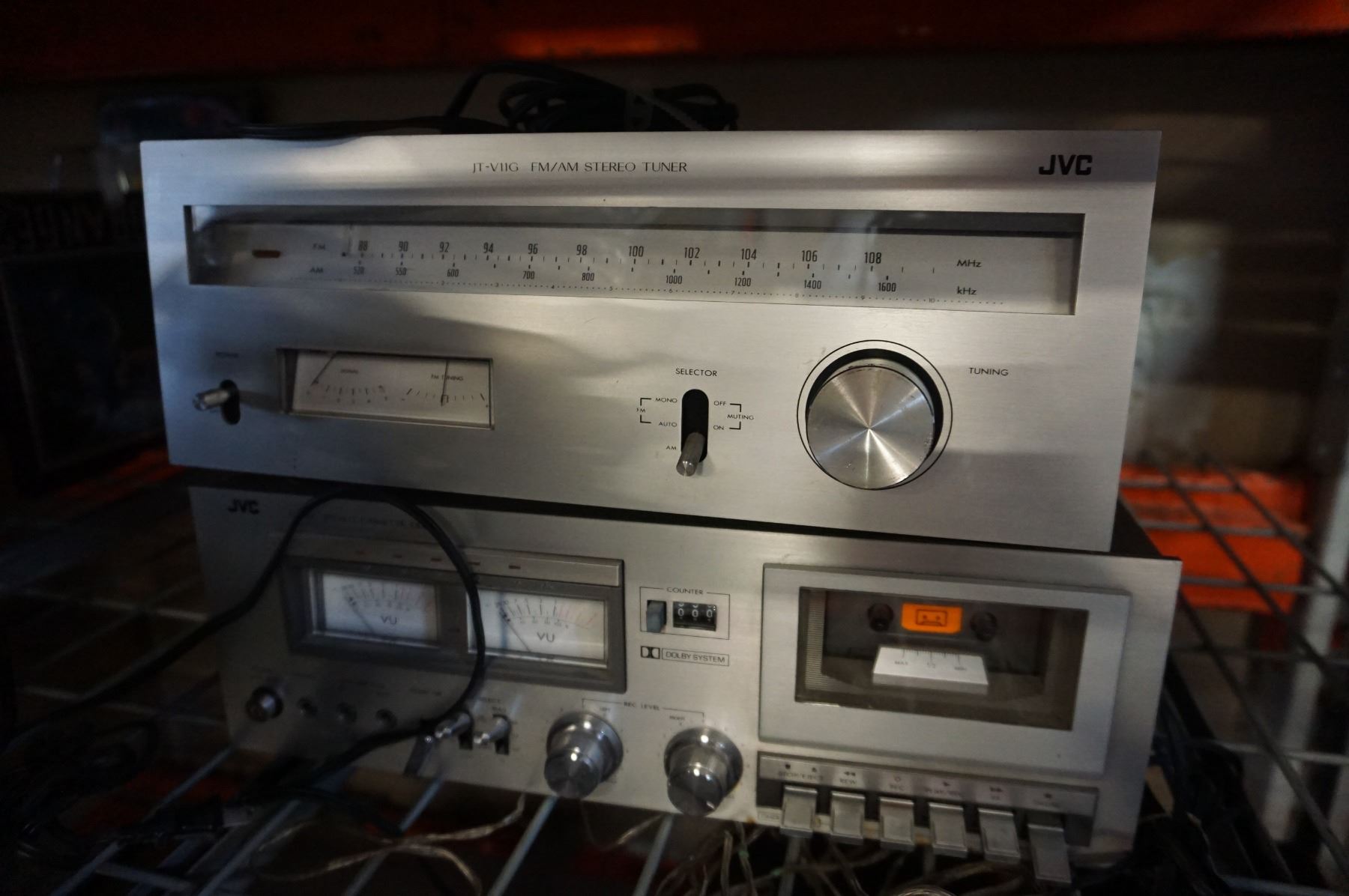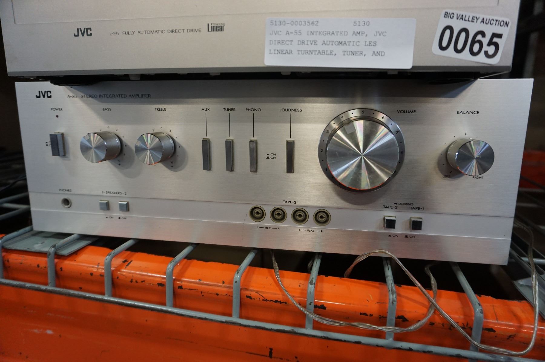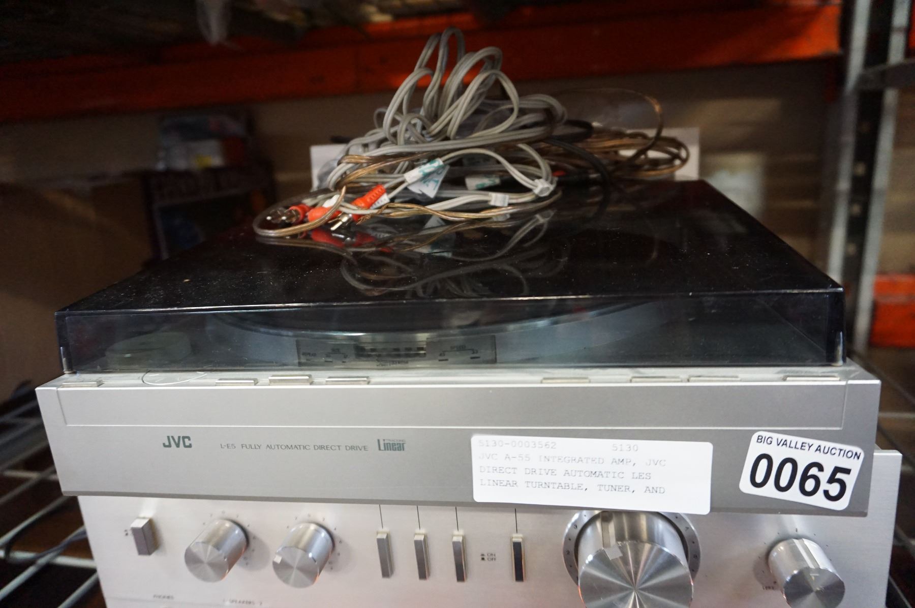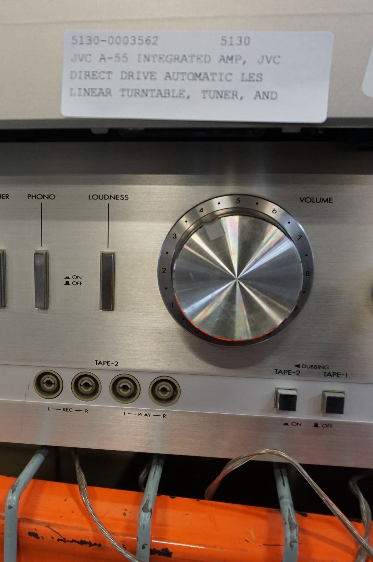 JVC A-55 INTEGRATED AMP, JVC DIRECT DRIVE AUTOMATIC LES LINEAR TURNTABLE, TUNER, AND TAPE DECK