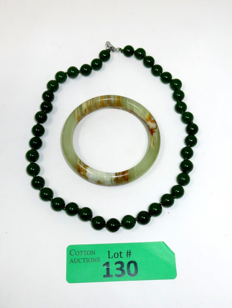 Hand carved bangle & hand knotted necklace