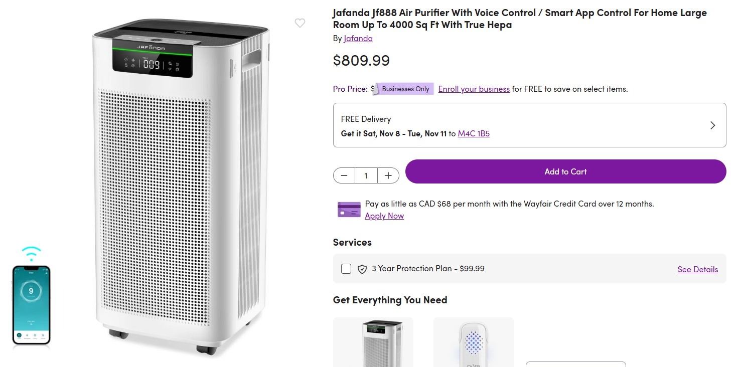 Jafanda Jf888 Air Purifier With Smart App up to 4000SQFT - Retail $800