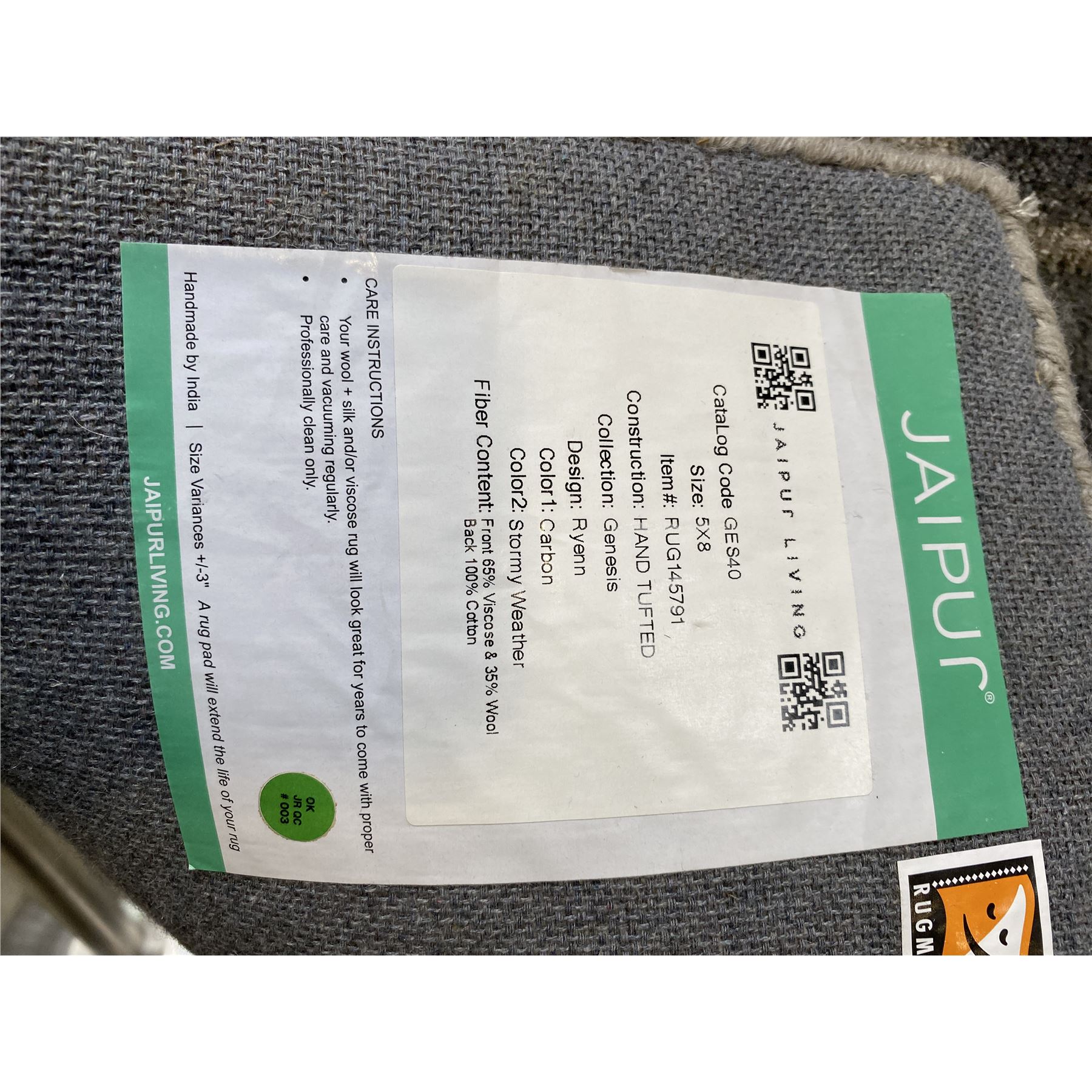 Jaipur Living Genesis Ryenne Indigo Ocean Hand Tufted Rug - 5 x 8", Retail Price $2,799.100