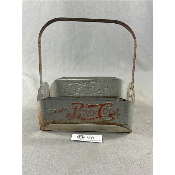 Vintage Pressed Steel Pepsi-Cola Delivery Basket. Approx. 9.5" H x 8.5" x 5.5"501 - Vintage Pressed Steel Pepsi-Cola Delivery Basket. Approx. 9.5" H x 8.5" x 5.5"