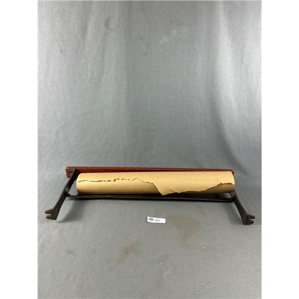 Vintage Wood & Metal Meat/Deli Wrapper Holder & Cutter. Approx. 28.5" x 11.25"502 - Vintage Wood & Metal Meat/Deli Wrapper Holder & Cutter. Approx. 28.5" x 11.25"
