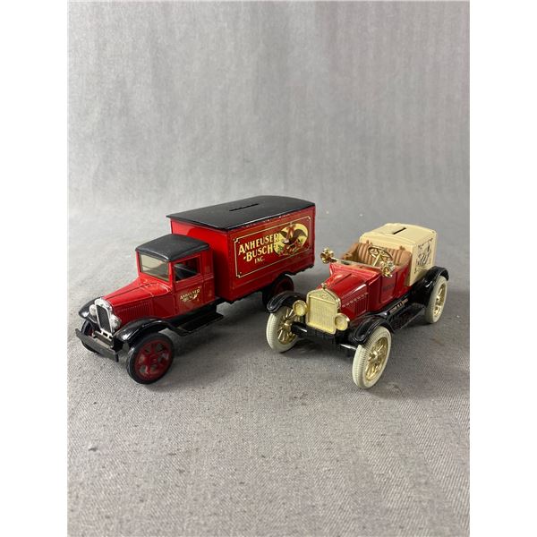 2 ERTL Die-Cast Metal Collectible Banks - 1931"Anheuser Busch Inc" Hawkeye & 1918 Ford Model T Runabout