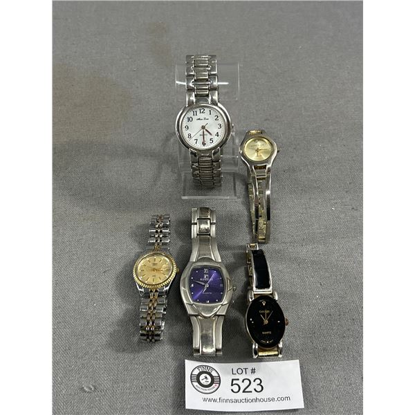 5 Stainless Steel Quartz Watches, Klein Diamond, Timex Rossini, Alain Louis George, Batteries Needed