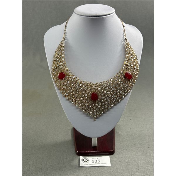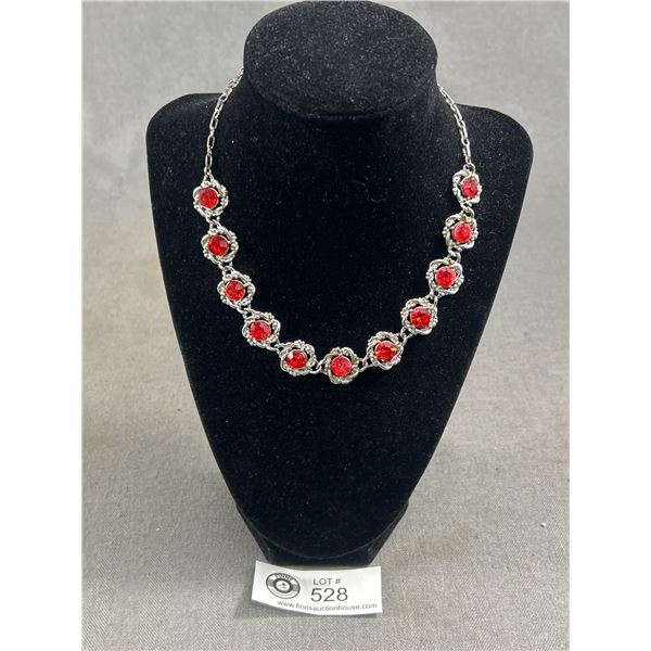 Lovely Red Rhinestones Vintage Necklace Marked Coro