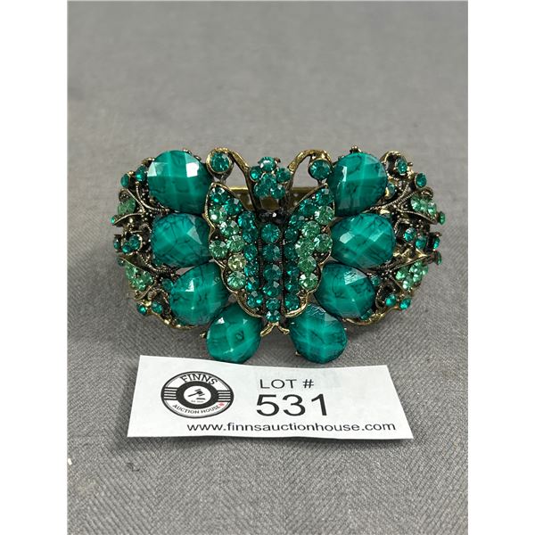 Outstanding Vintage Butterfly Design Rhinestones Hinged Bangle531 - Outstanding Vintage Butterfly Design Rhinestones Hinged Bangle