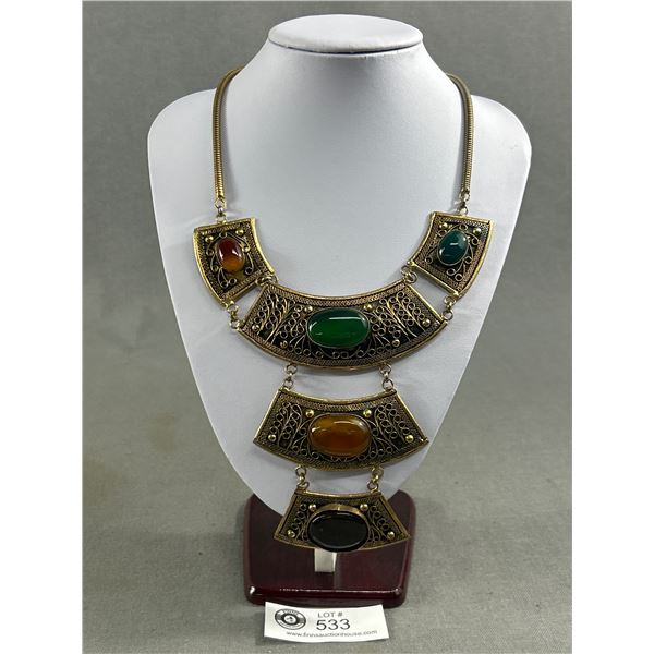 Elaborate Semi Precious Stones Huge Bib Necklace