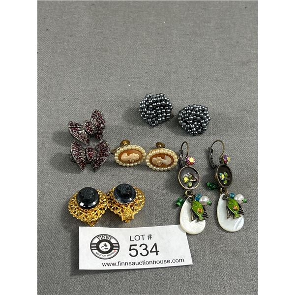 5 Vintage Pairs of Earrings, Some Cameo Design534 - 5 Vintage Pairs of Earrings, Some Cameo Design