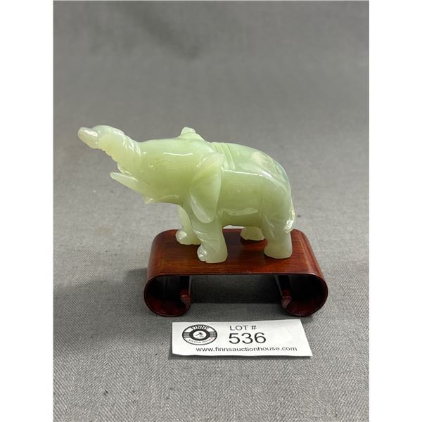 Vintage Handcarved Jade Elephant Sculpture w/ Wood Stand (Little Damage on Trunk)536 - Vintage Handcarved Jade Elephant Sculpture w/ Wood Stand (Little Damage on Trunk)