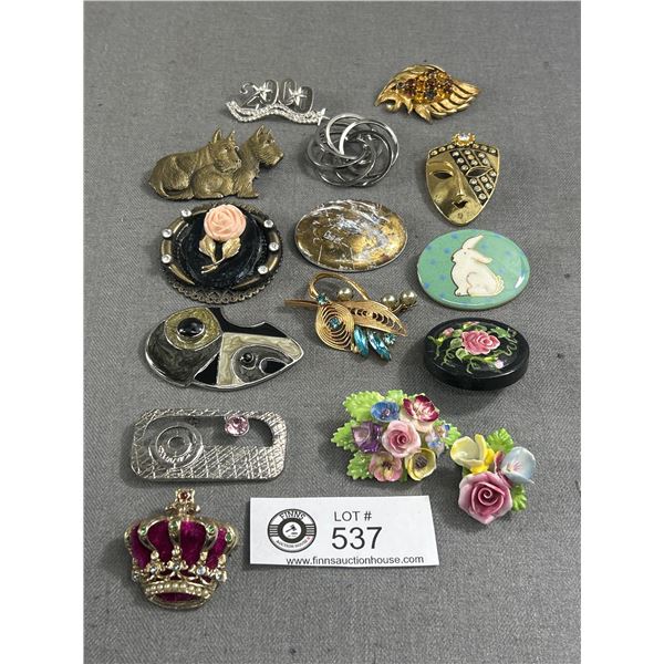 15 Vintage Ornate Brooches, Some Signed, Some Rhinenstones537 - 15 Vintage Ornate Brooches, Some Signed, Some Rhinenstones