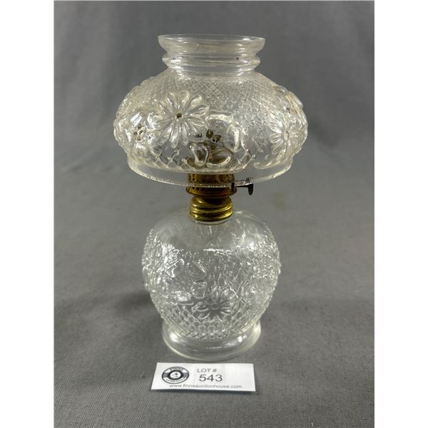 Antique "P&A MFG. CO. ACORN" (Marked On Wick Adjuster) Stemless Daisy Pattern Miniature Oil Lamp. Approx. 8"H
