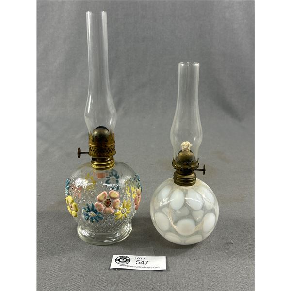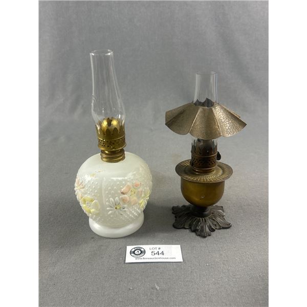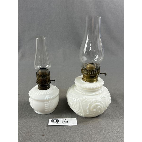 2 Antique Milk Glass Oil Lamps - Made In USA 7"H & 8.75" H