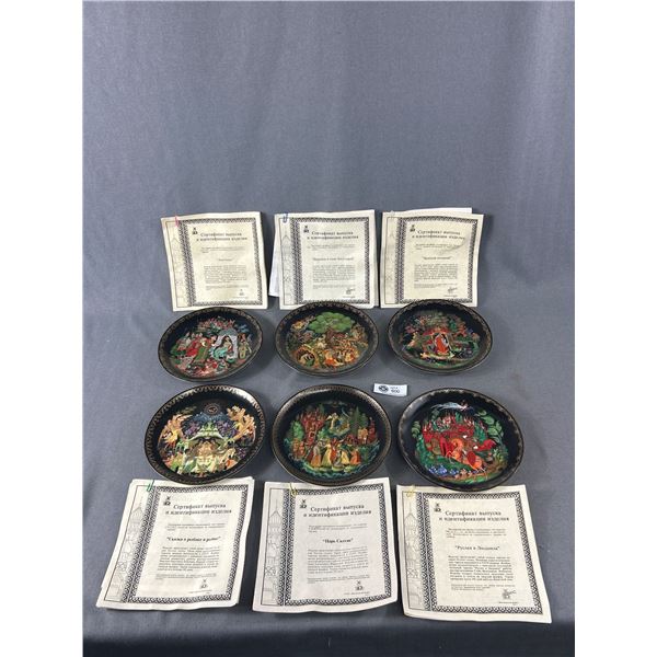6 Beautiful Vintage 7.75" Russian Collector Plates Inspired By The Poetry Of Alexander Pushkin w/C.O.A