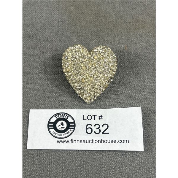 Gorgeous Silvertone Rhinestone Heart Pin Marked Coro