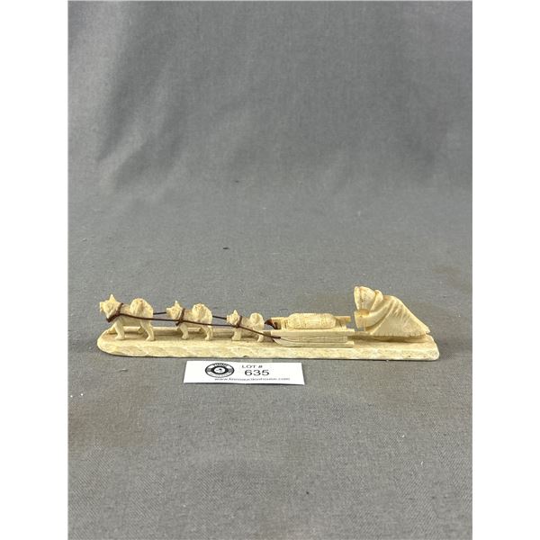 Beautiful Inuit Eskimo Carving of Inuit Family and Dog Sled Team.