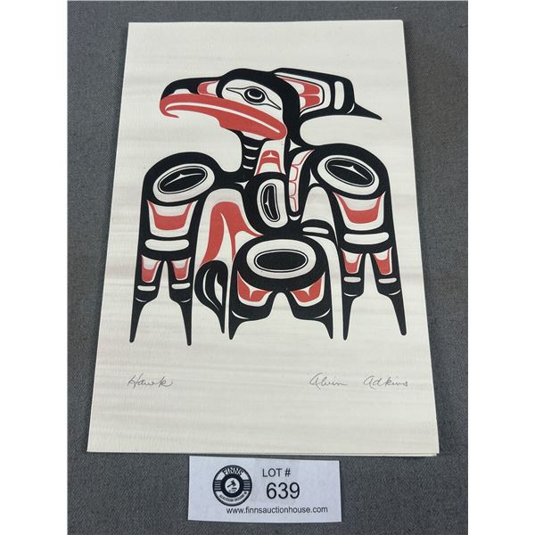 Beautiful West Coast First Nations Artsit Card. Alvin Adkins. Hawk