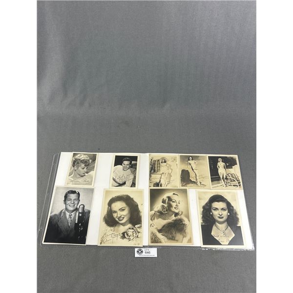 13 Celebrity Photos, Some Autographed. Lana Turner, Roslyn Russell, Etc. In Page Sleeves