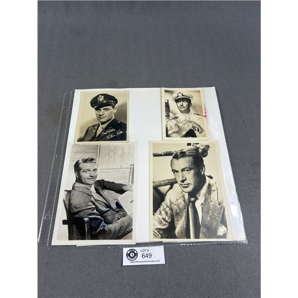 9 Celebrity Photos, Some Autographed Gary Cooper, William Holden Etc. In Page Sleeves