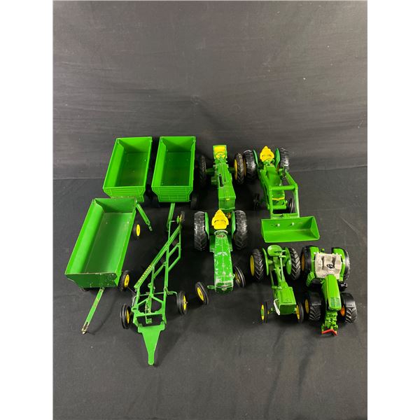 Lot Of Vintage & Newer John Deere Die Cast Metal Tractors & Trailers. Largest ERTL Tractor Is 12"L.