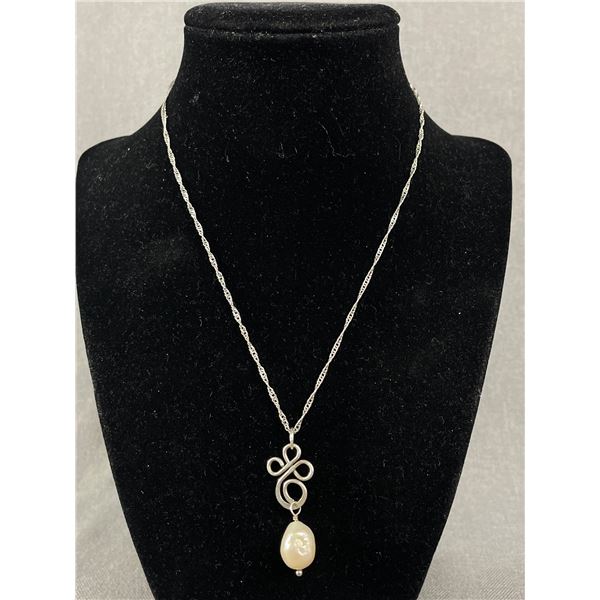 Sterling Silver w/ Genuine Pearl Pendant Necklace